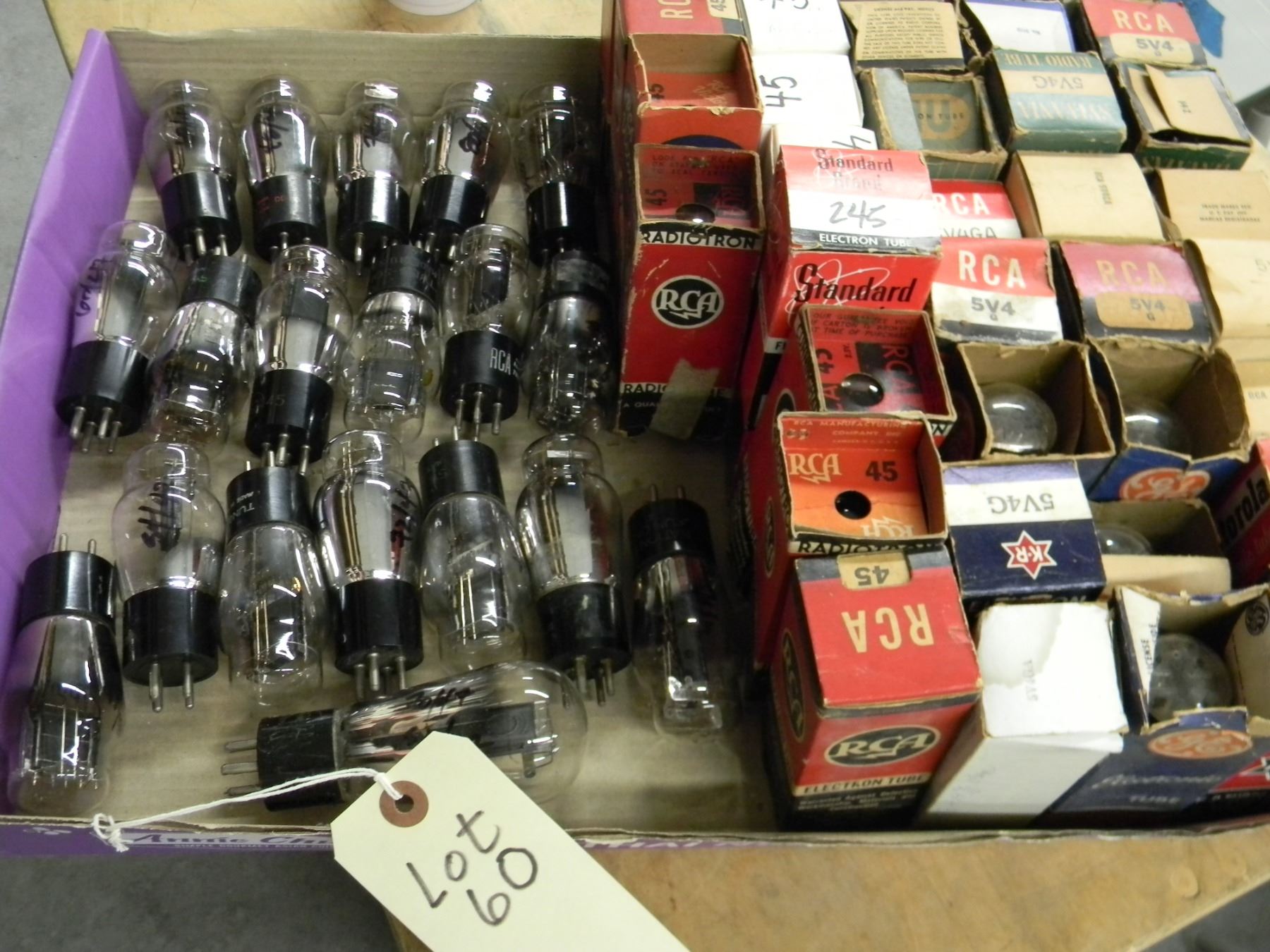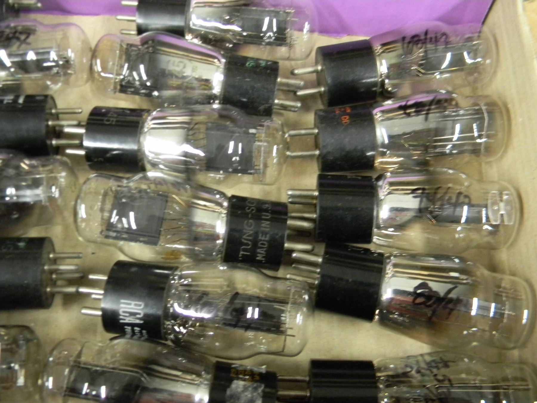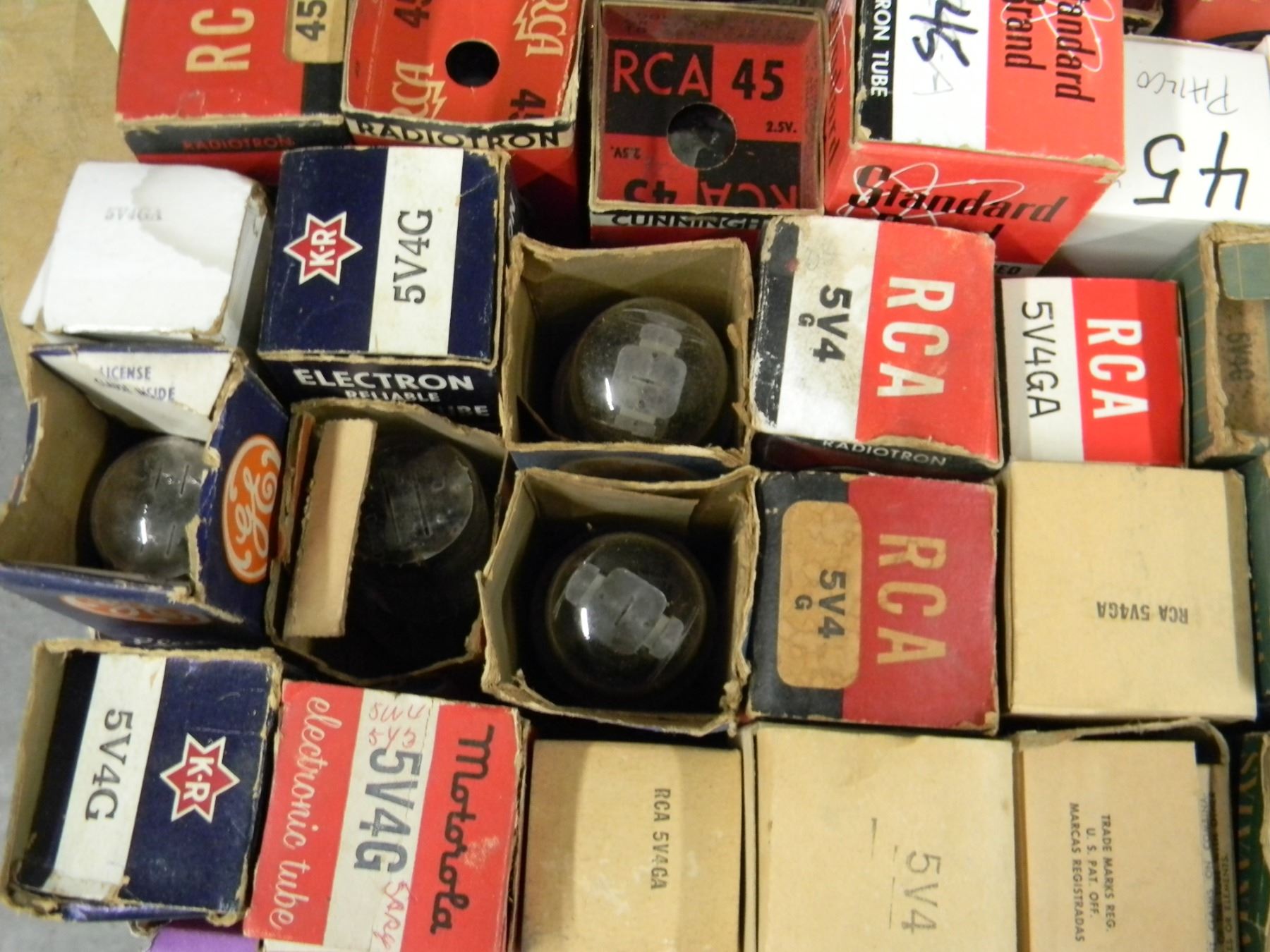 Large flat of tubes; new and good tested used; type 45, 5V4; approximately 55