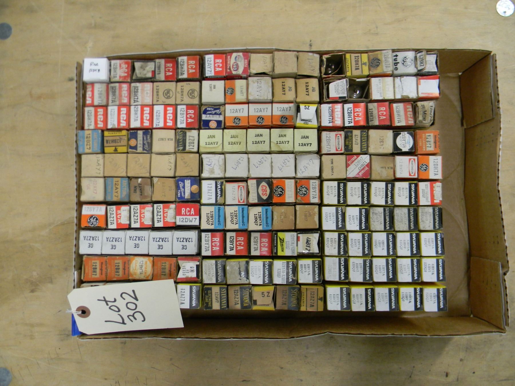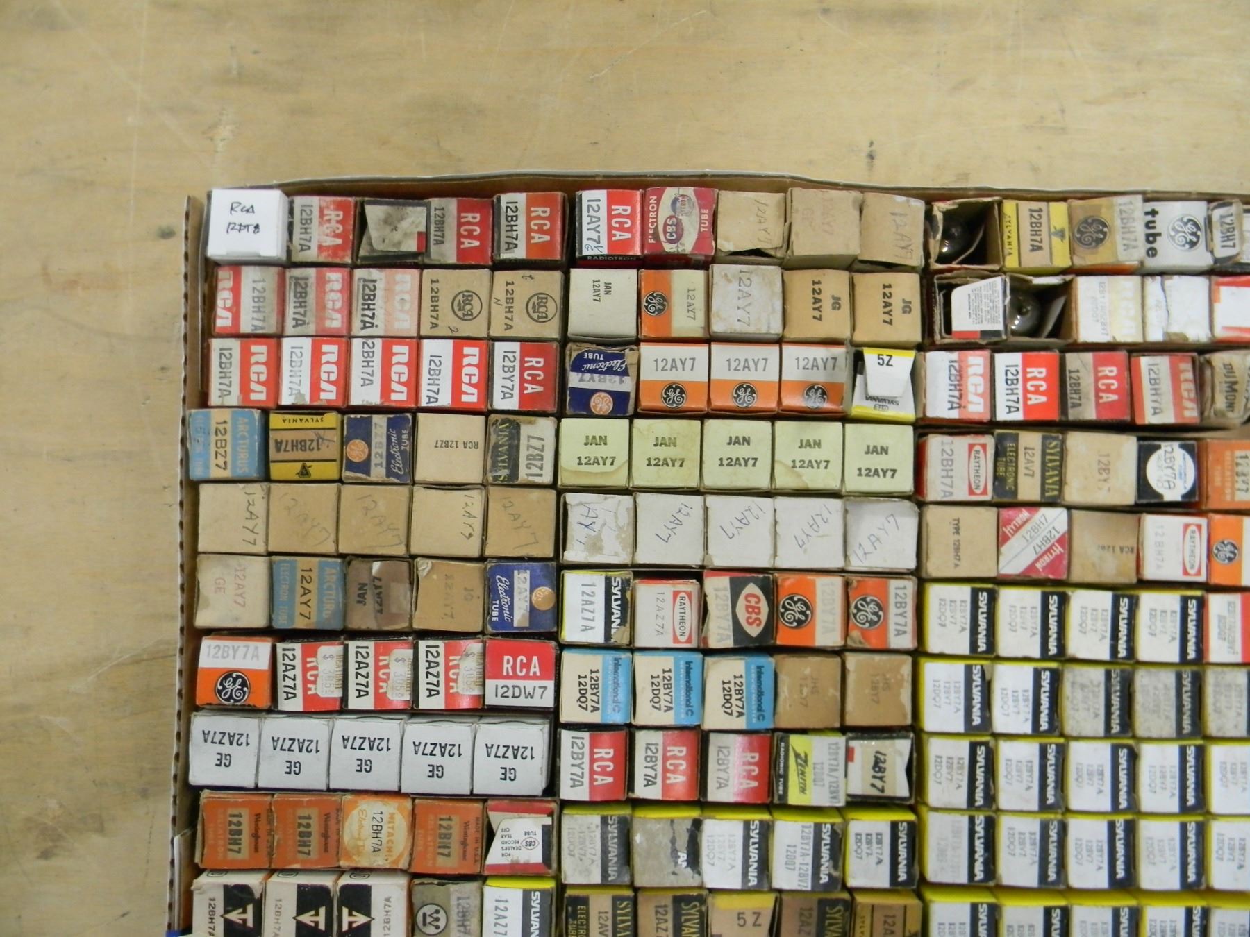 Flat of tubes; mostly NOS; miniature; approximately 150; inludes 12BY7, 12BH7, 12AZ7, etc.