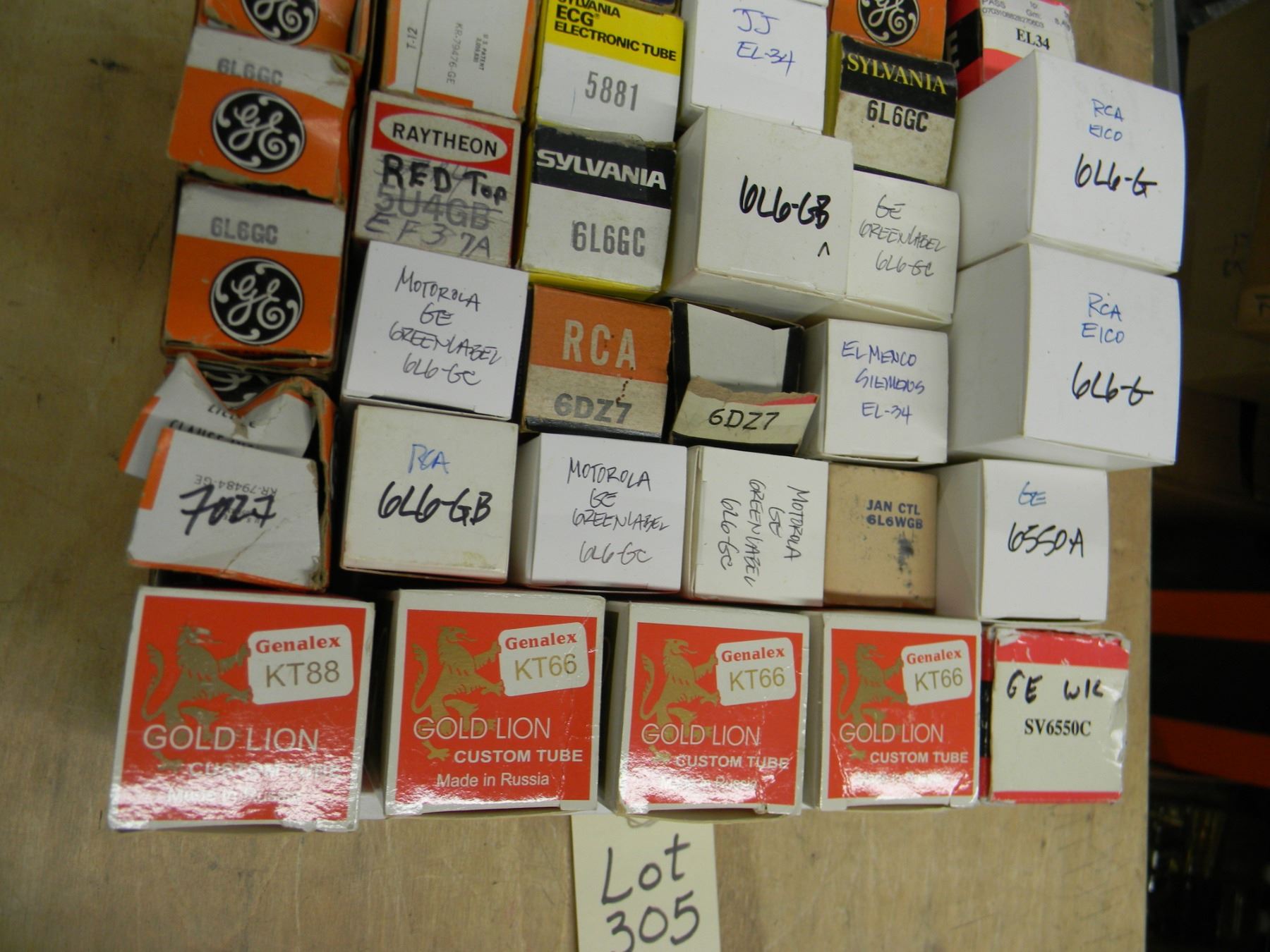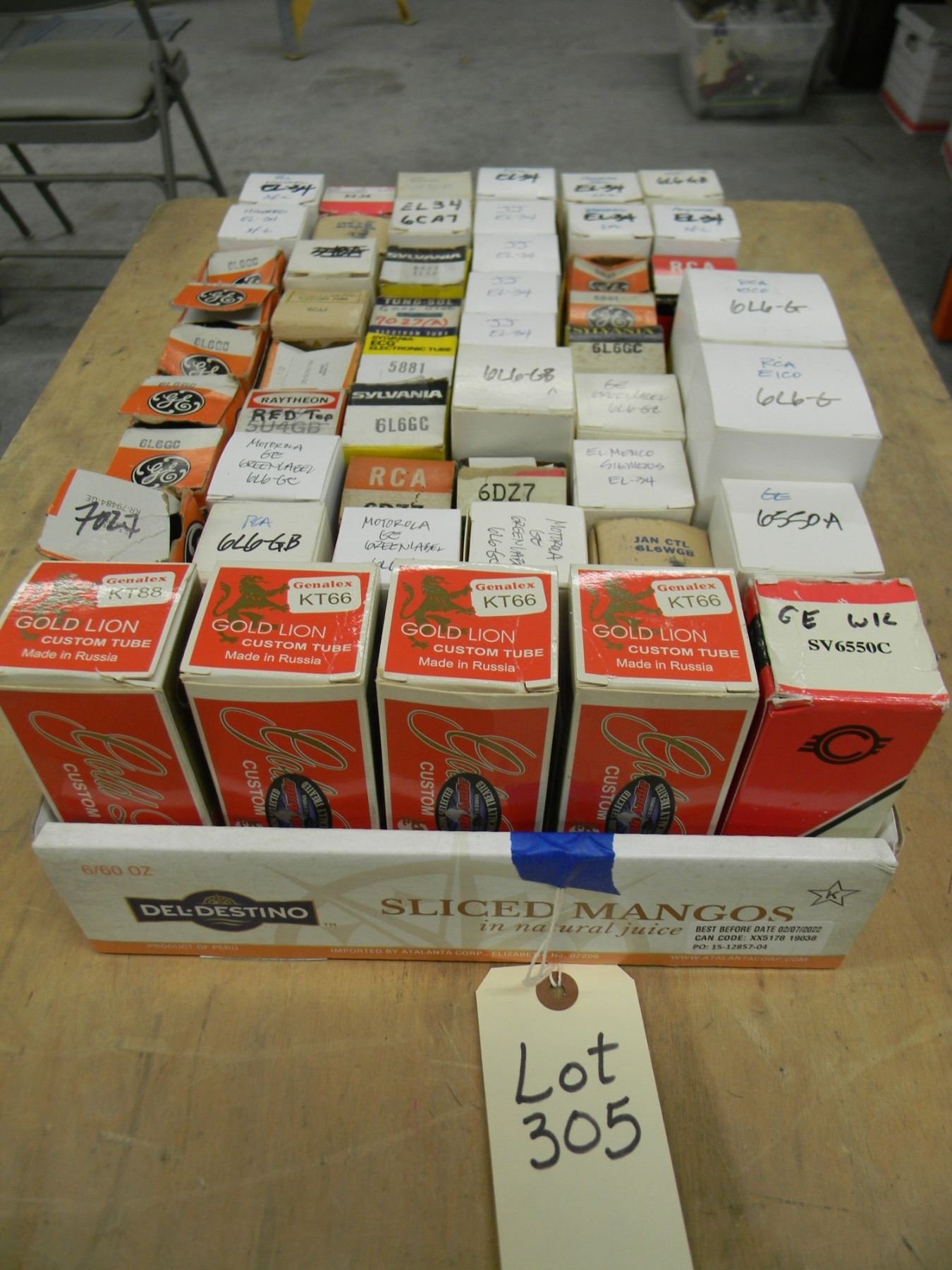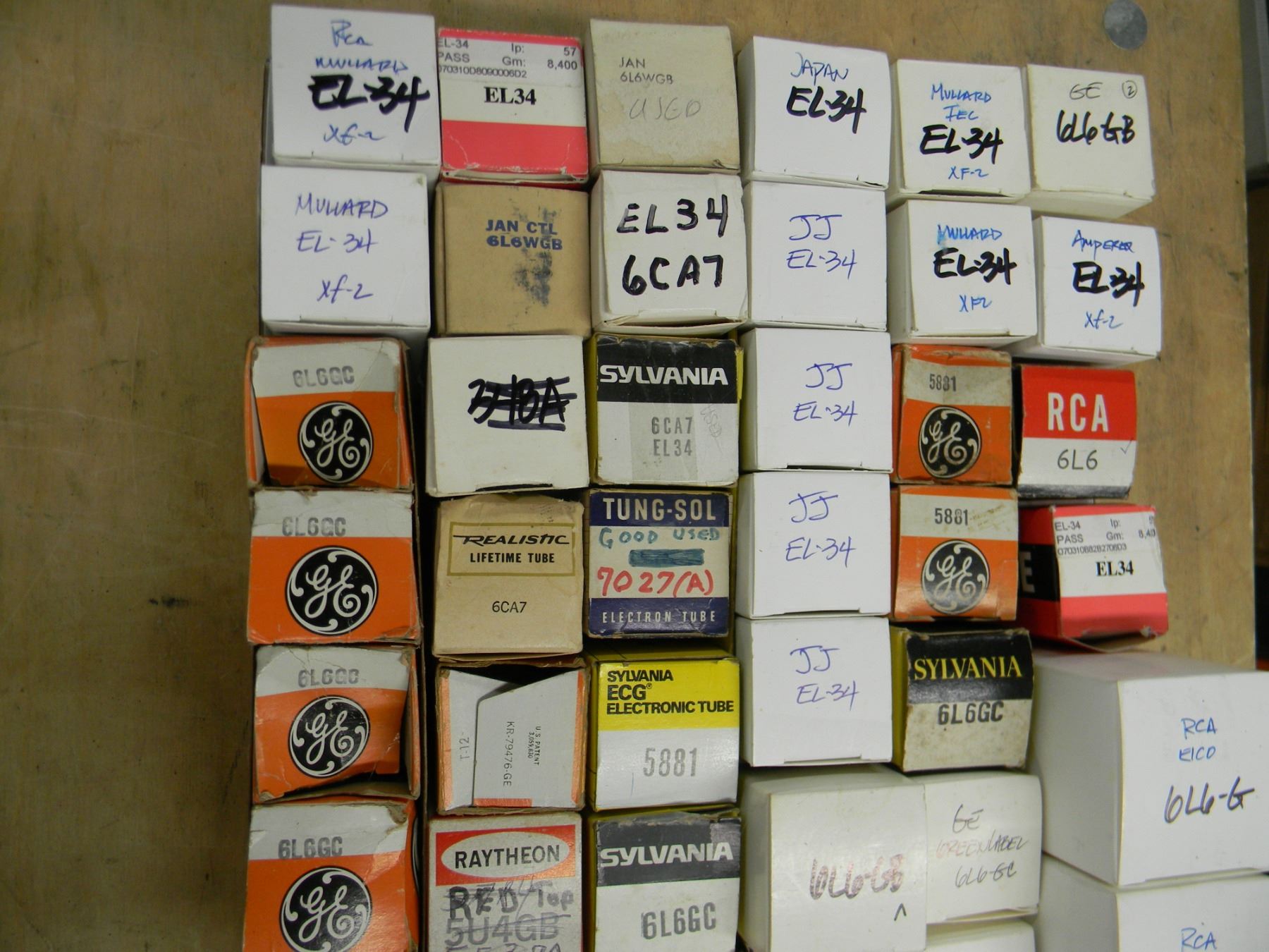 Flat of tubes; new and good tested audio tubes, including KT66, 6550, EL34, 5881; good box!