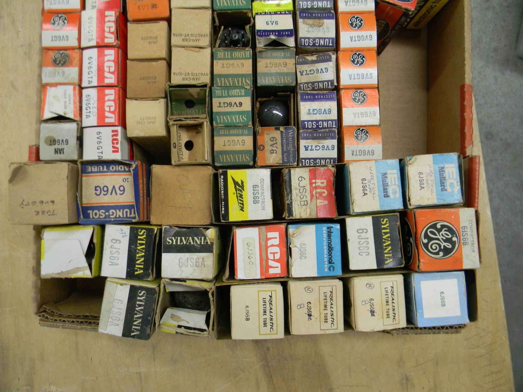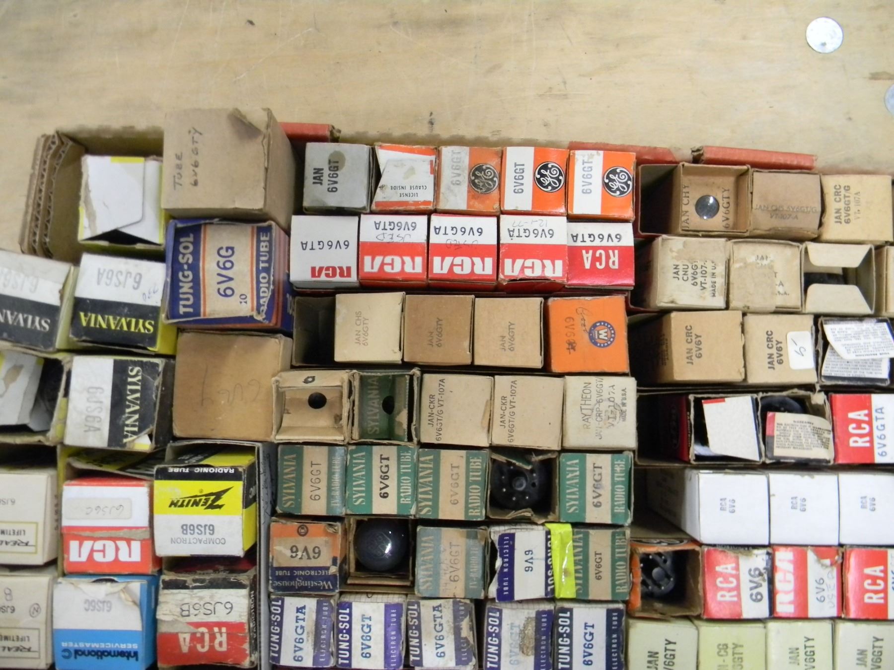 Flat of tubes; mostly NOS; mostly 6V6; approximately 105