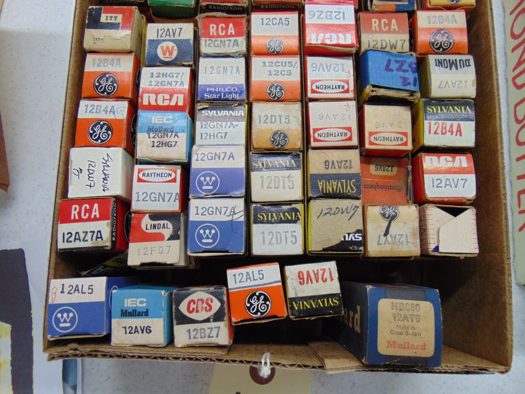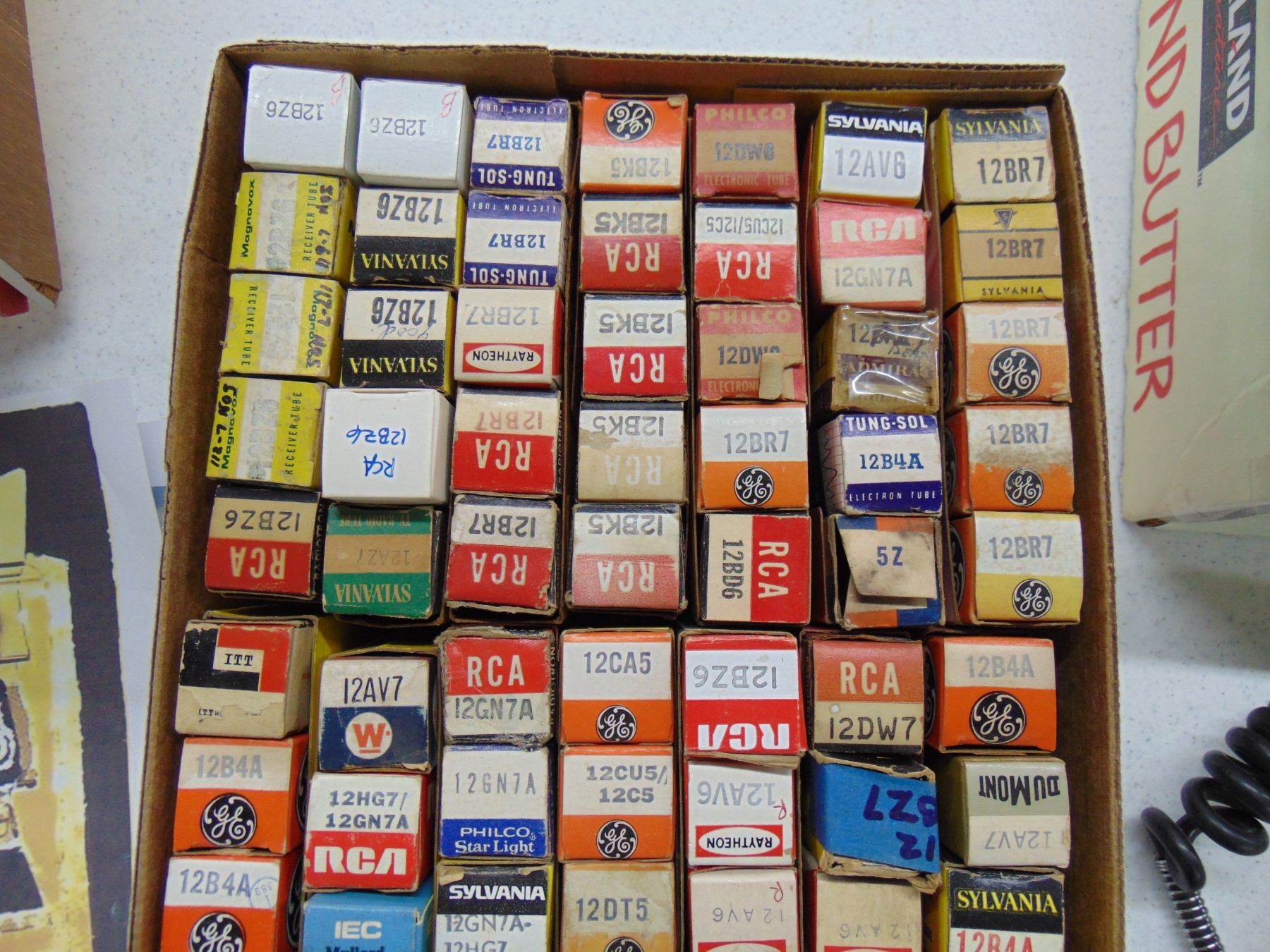 Flat of tubes; mostly NOS miniature tubes; approximately 75