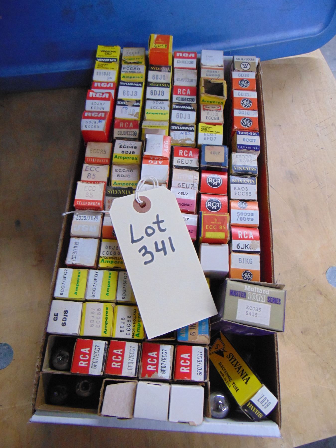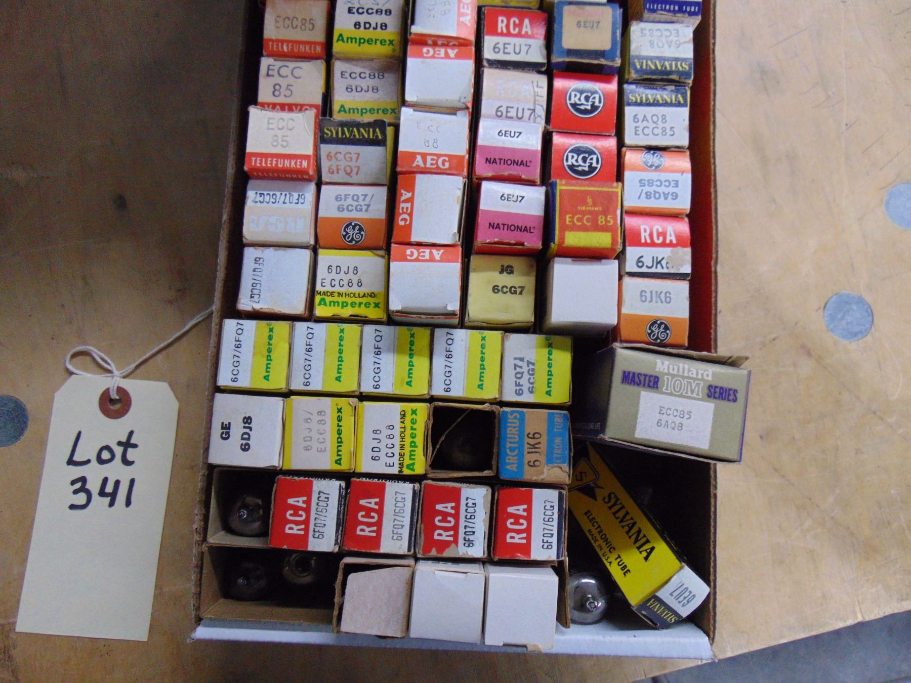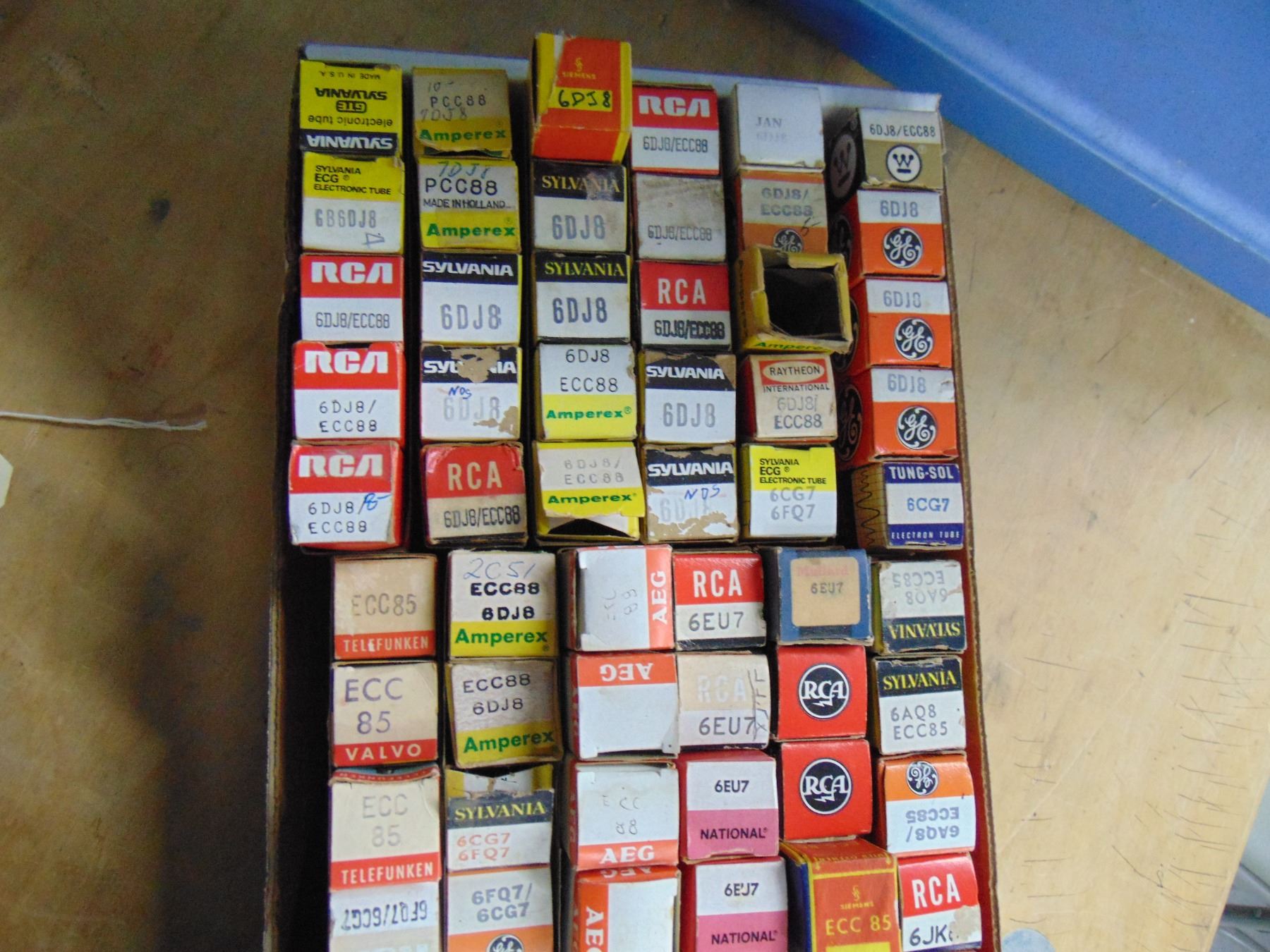 Flat of tubes; miniature tubes, including audio, some Telefunken; approximately 80; many European; mostly NOS