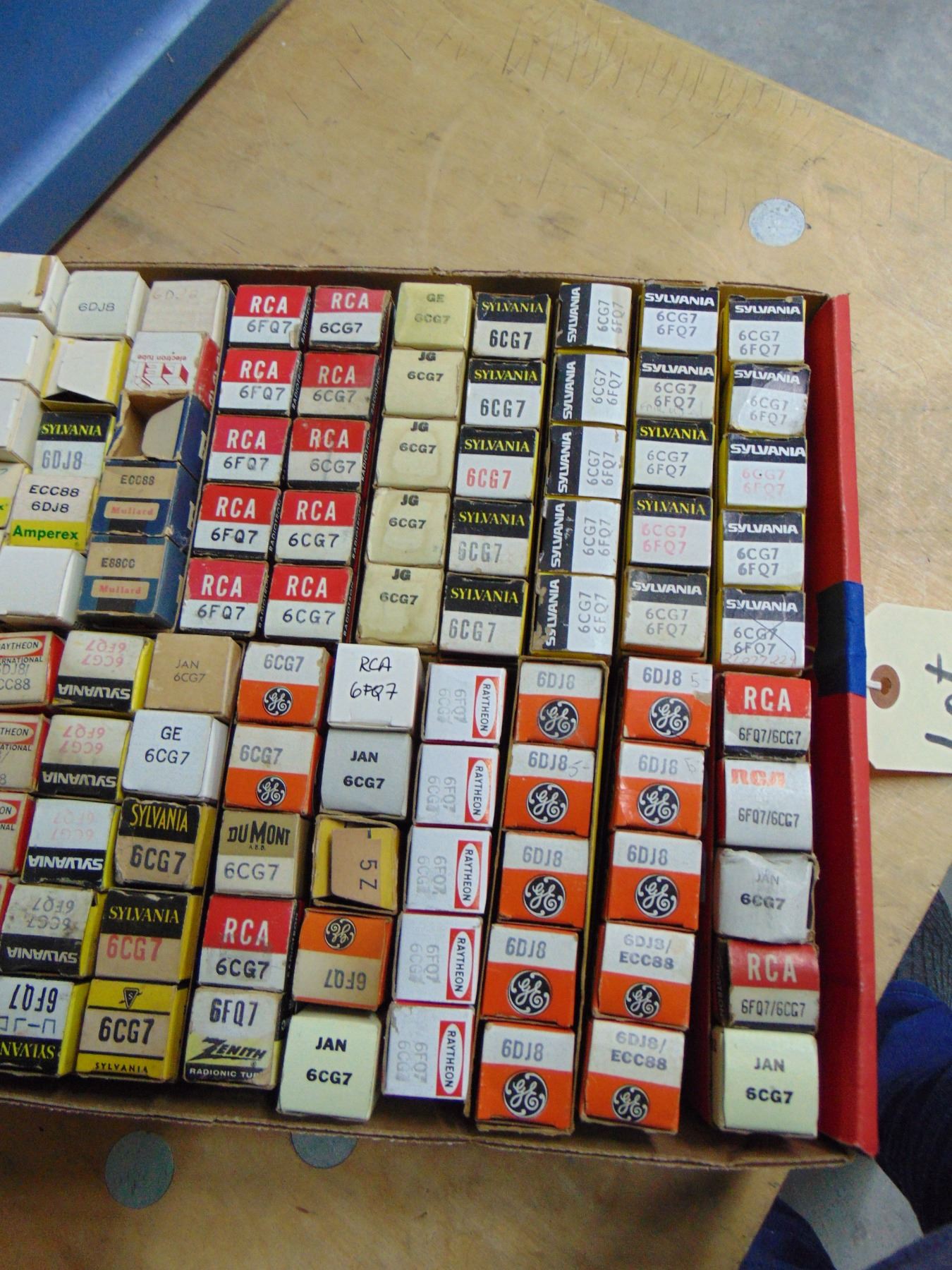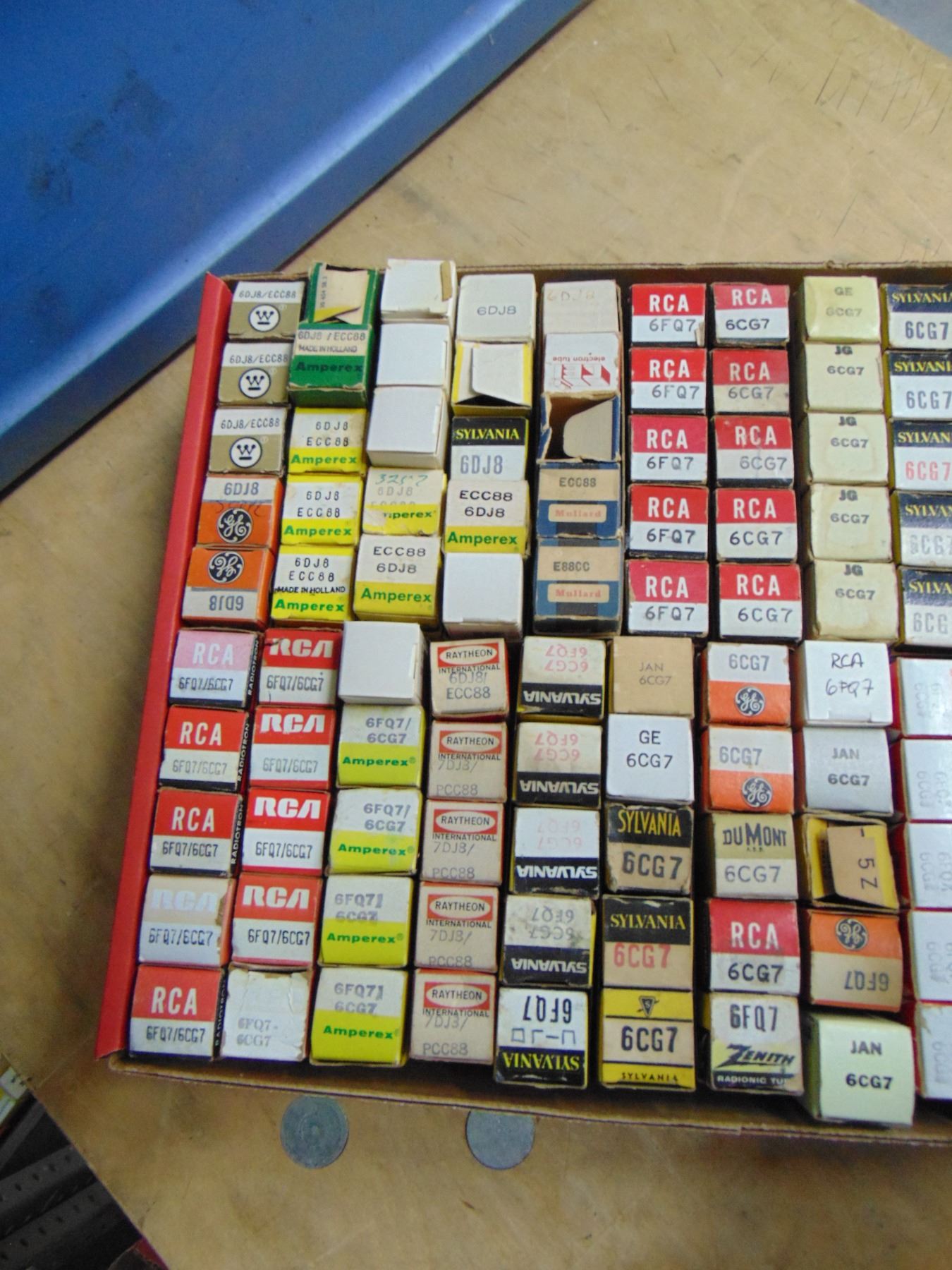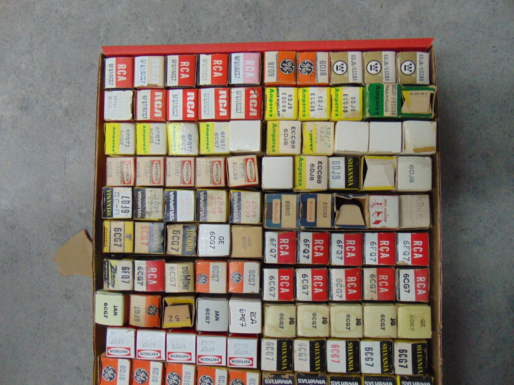Flat of tubes; mostly NOS audio tubes; many Amperex and Mullard; approximately 120