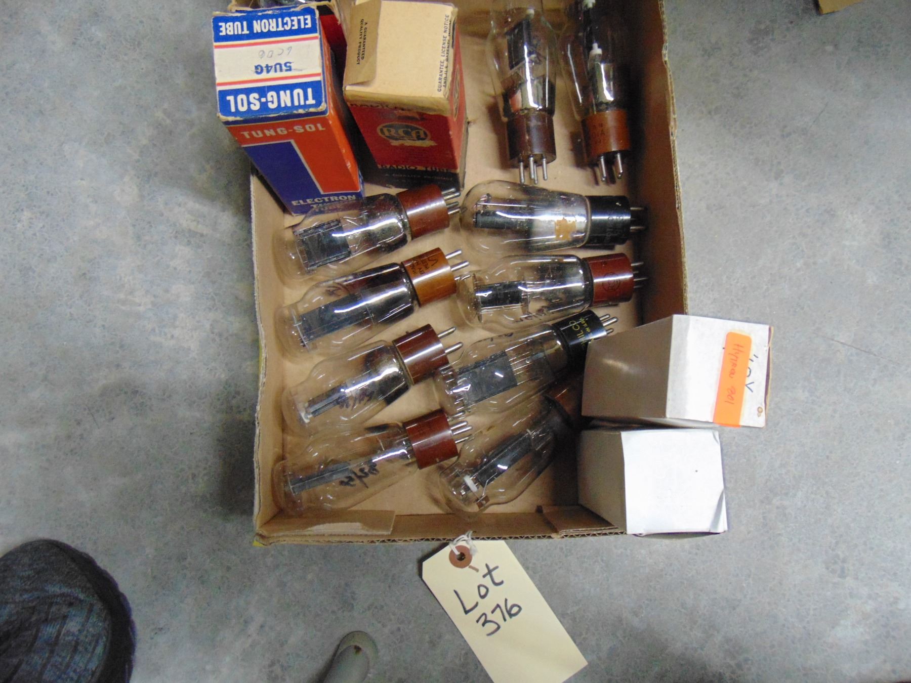 Flat of tubes; mostly good tested audio tubes; including VT25A, VT51, 10Y, and others