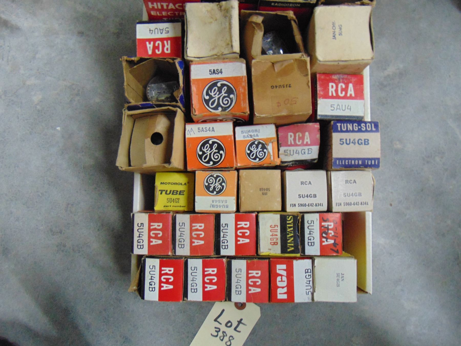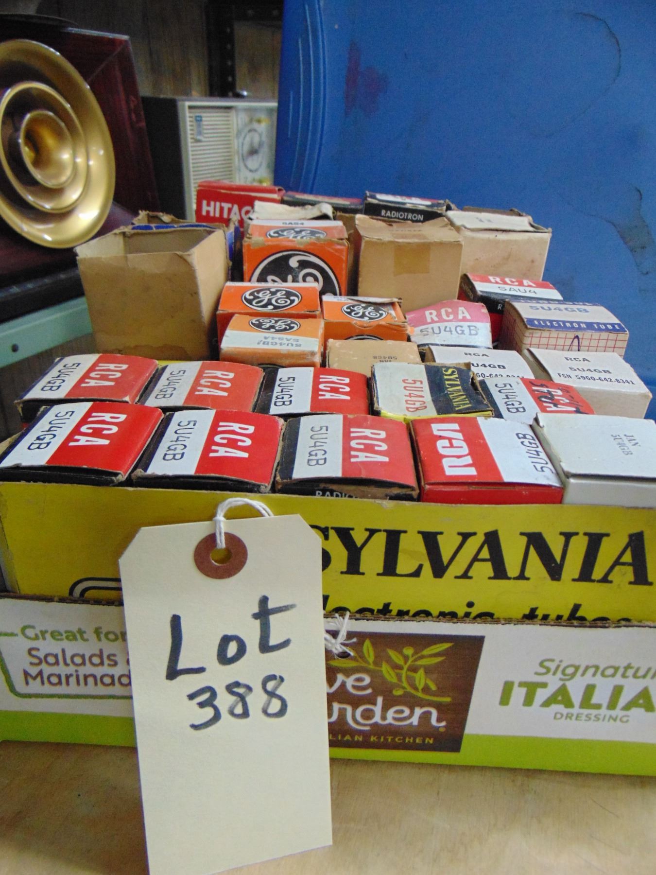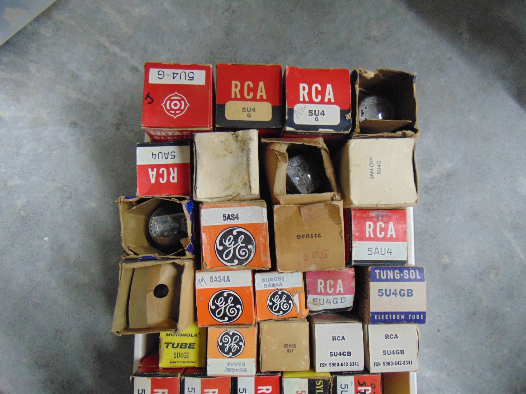 Flat of tubes; mostly NOS rectifier tubes; approximately 30