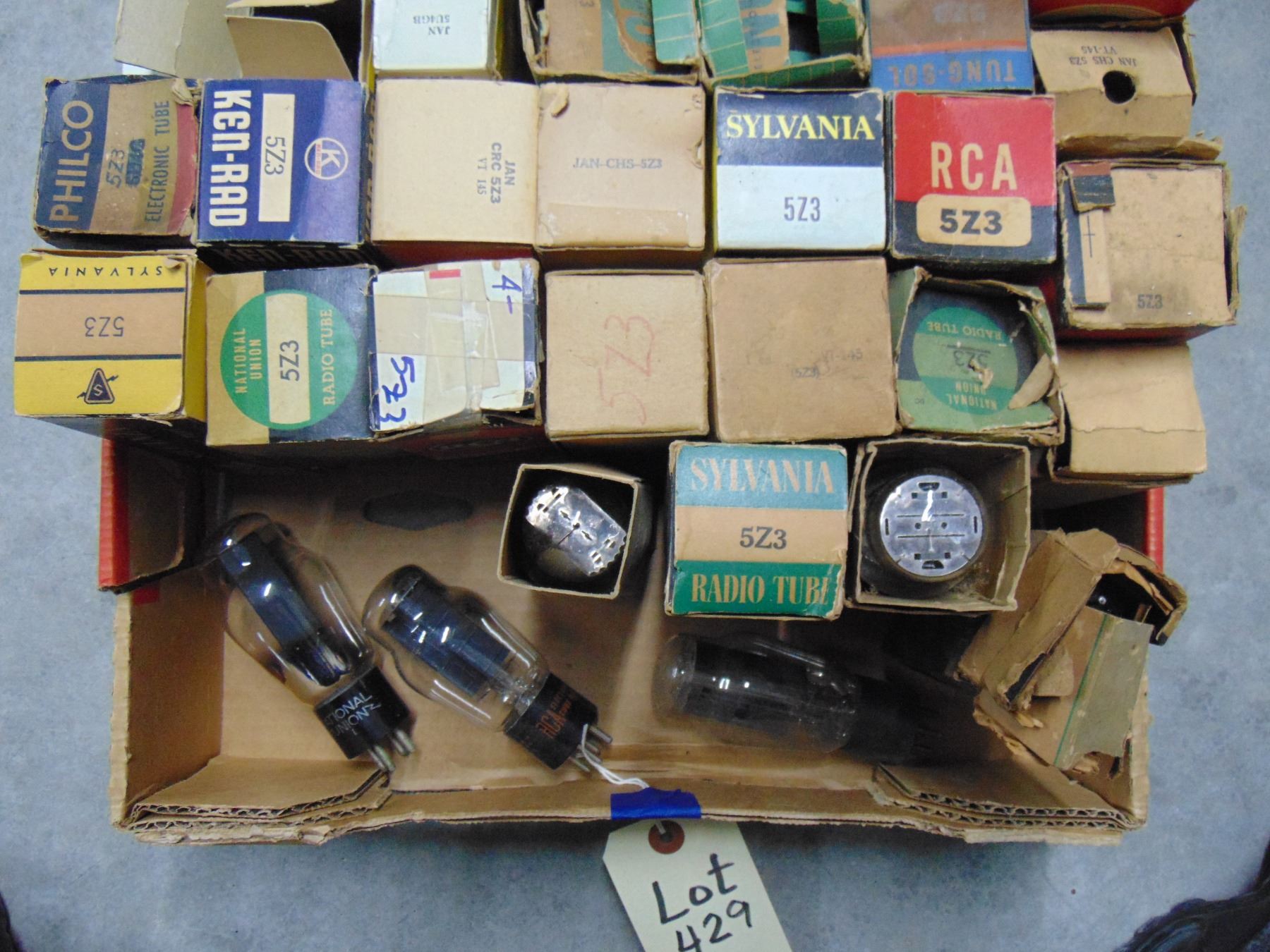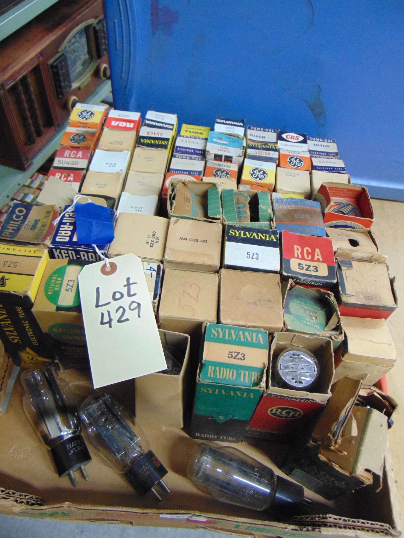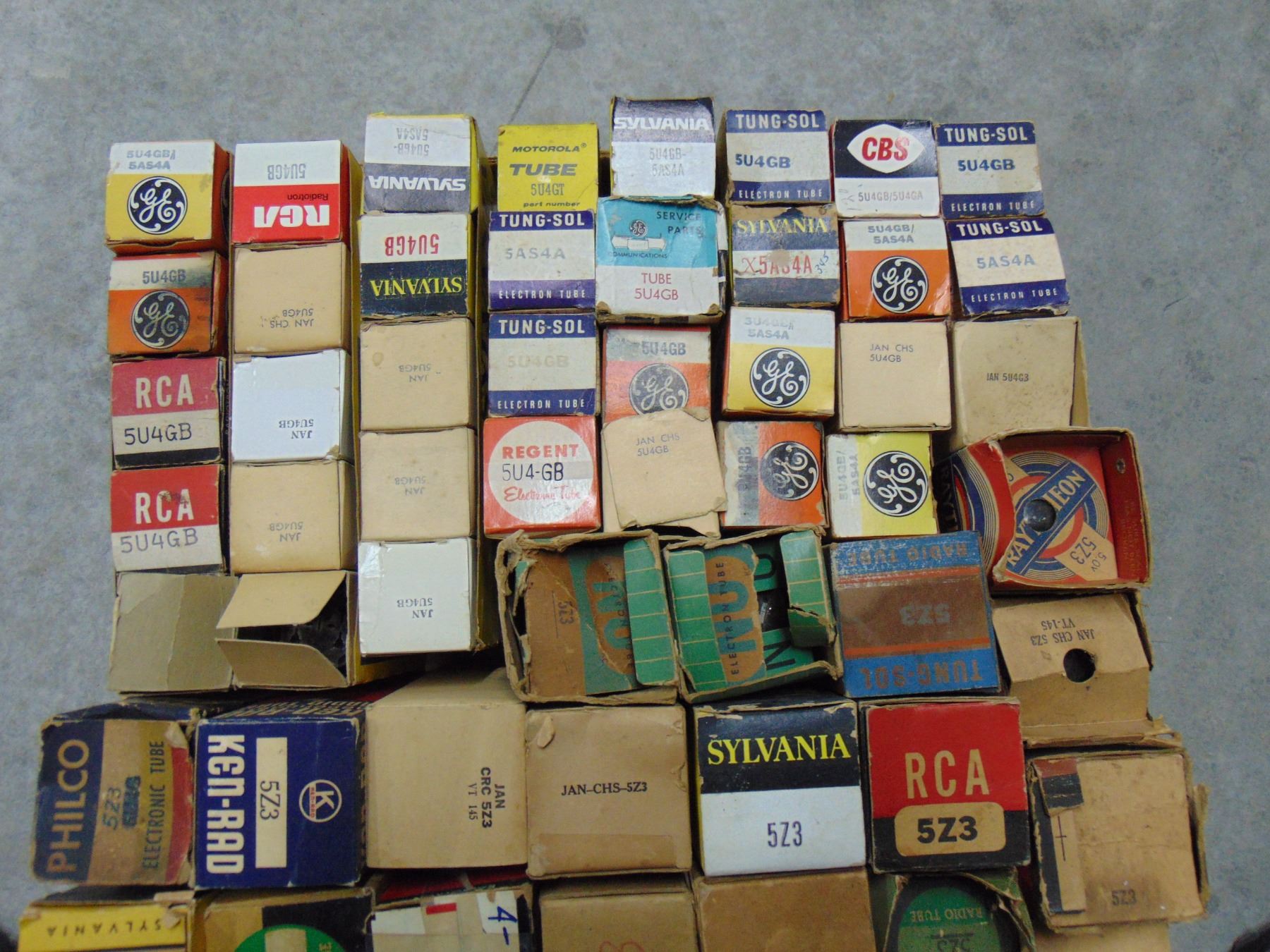Flat of tubes; mostly NOS rectifier tubes; approximately 55