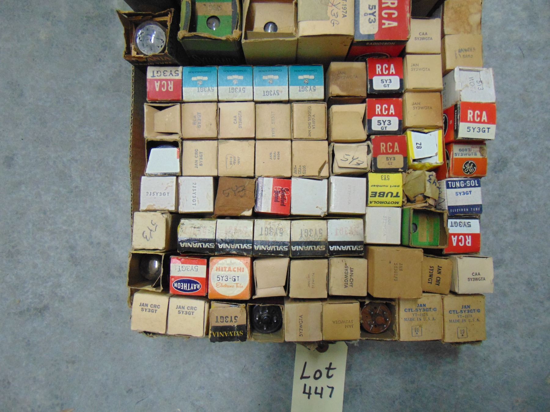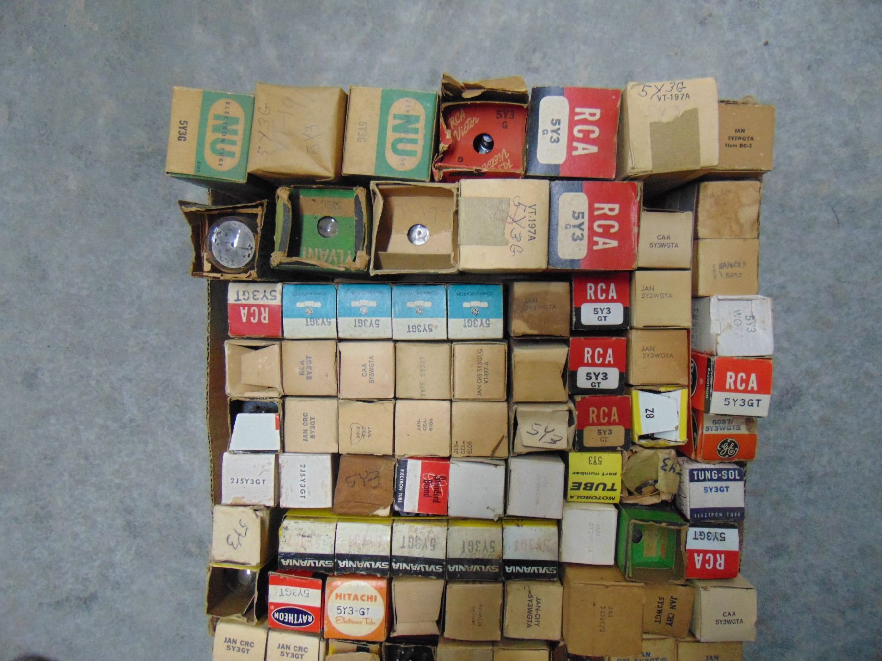 Flat of tubes; mostly NOS rectifier tubes; 5Y3; approximately 75