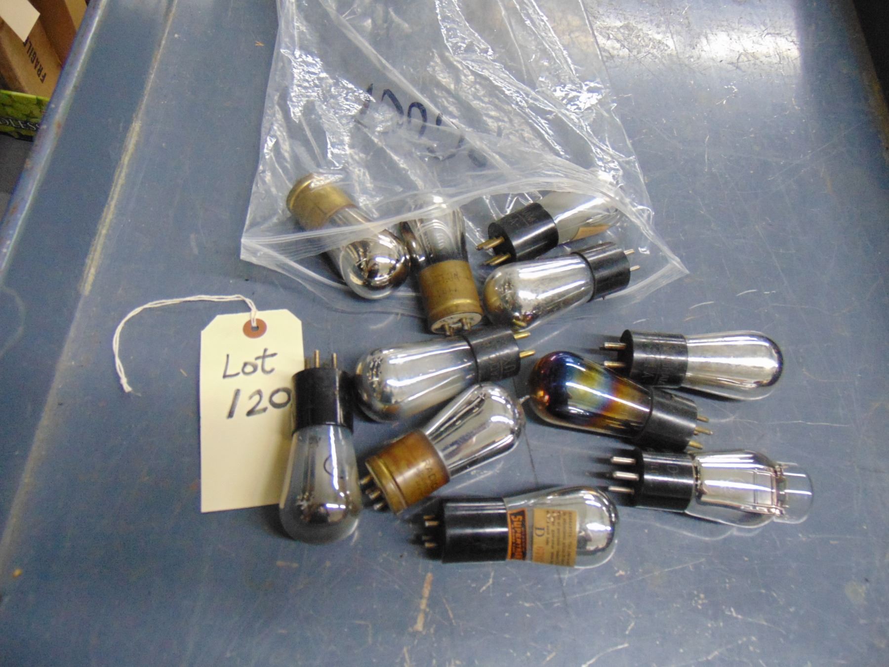 Bag of dud or weak tubes; O1A's; including brass base tipped; 10 tubes