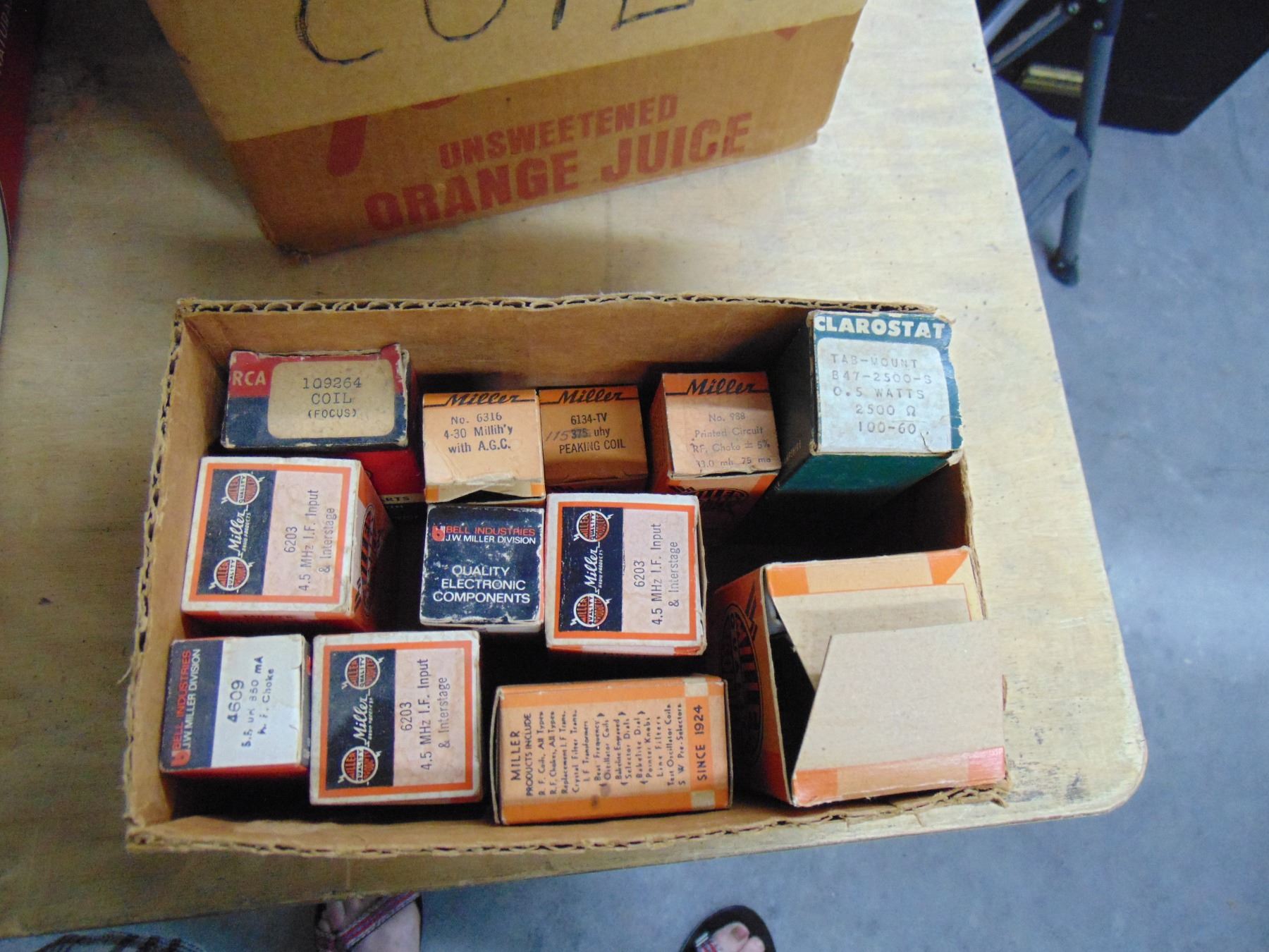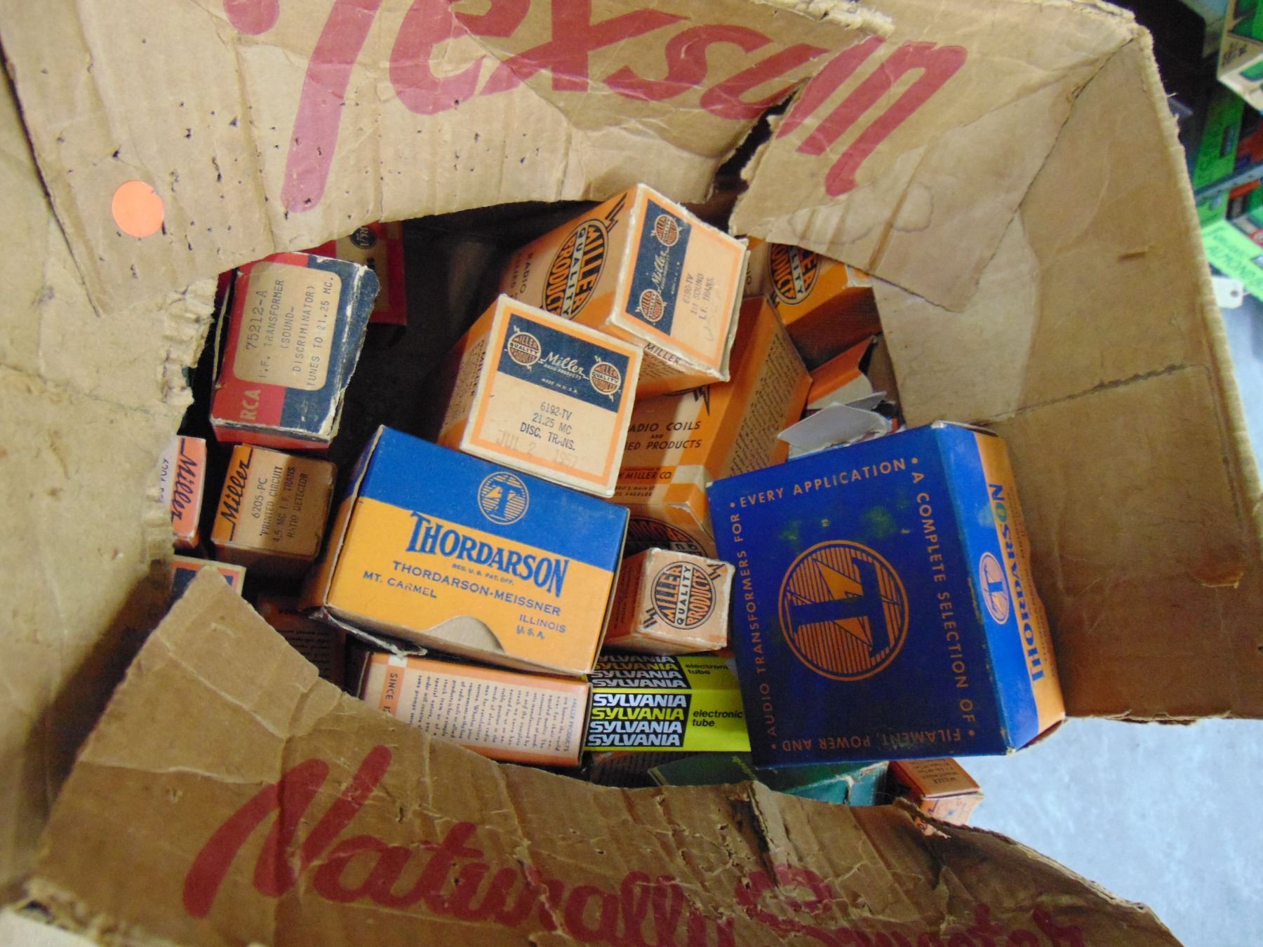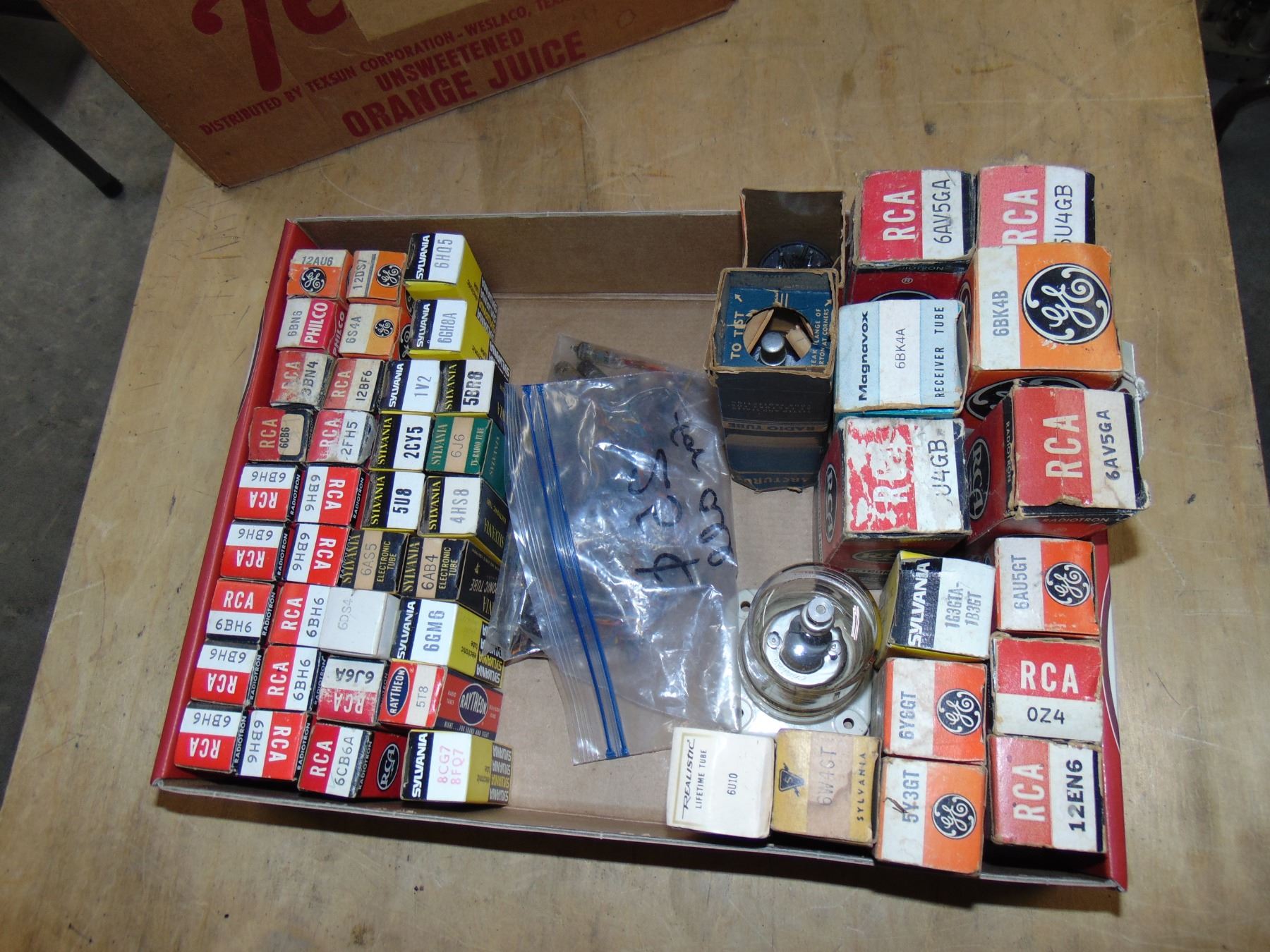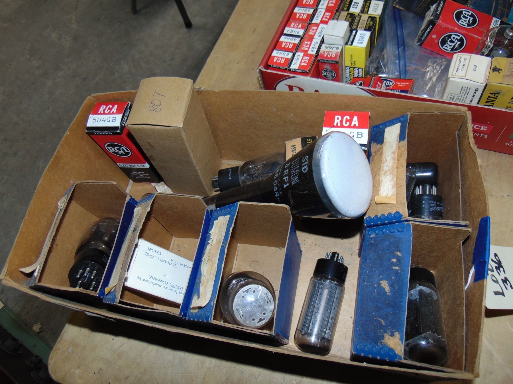 3 boxes of tubes and parts; includes many NOS tubes and NOS parts
