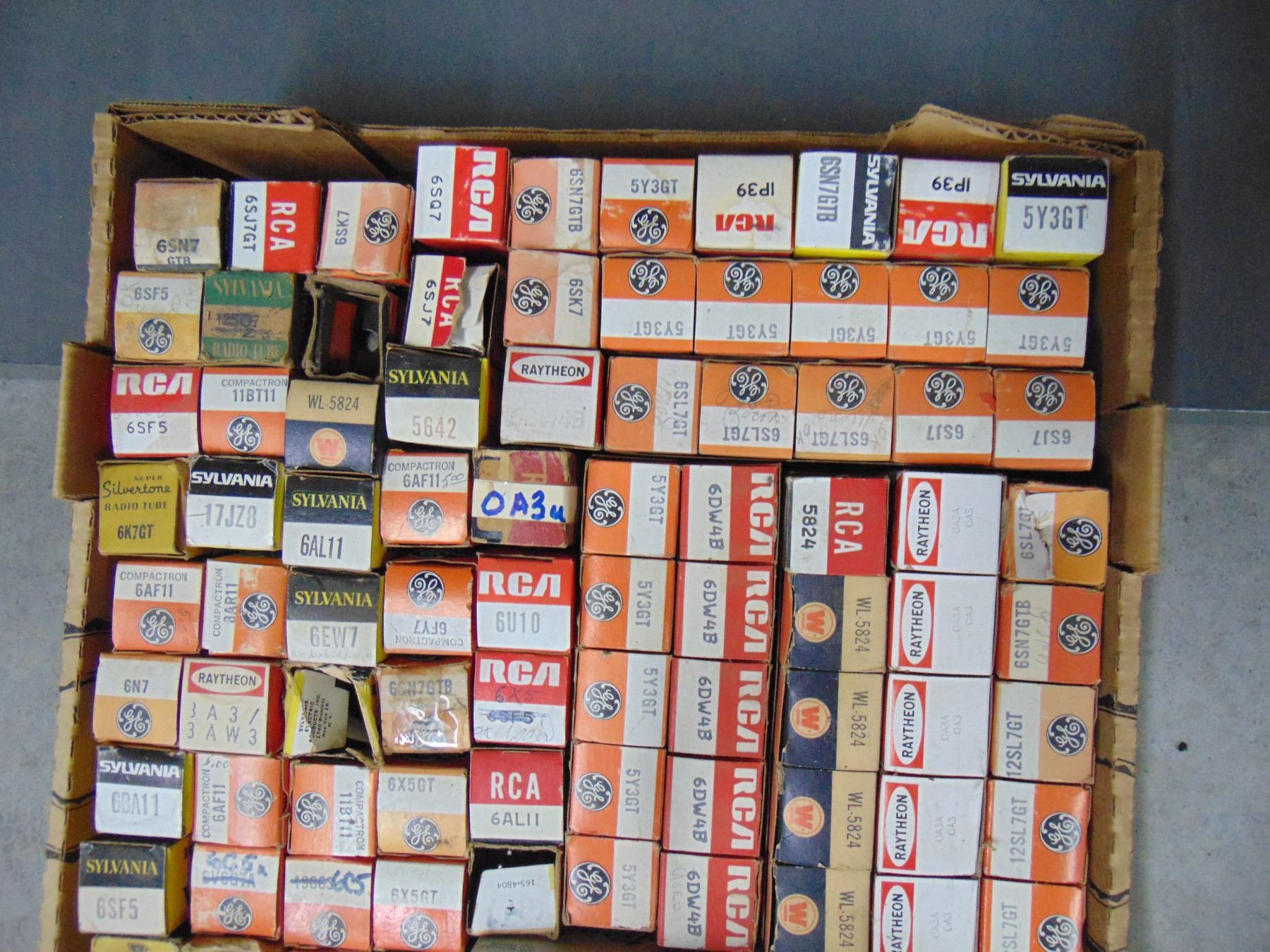 Large flat of mostly NOS GT type tubes; approximately 130 tubes