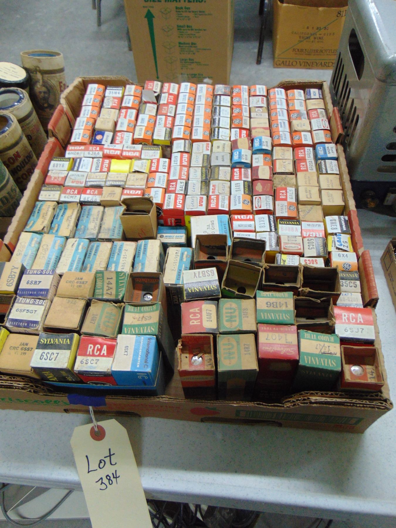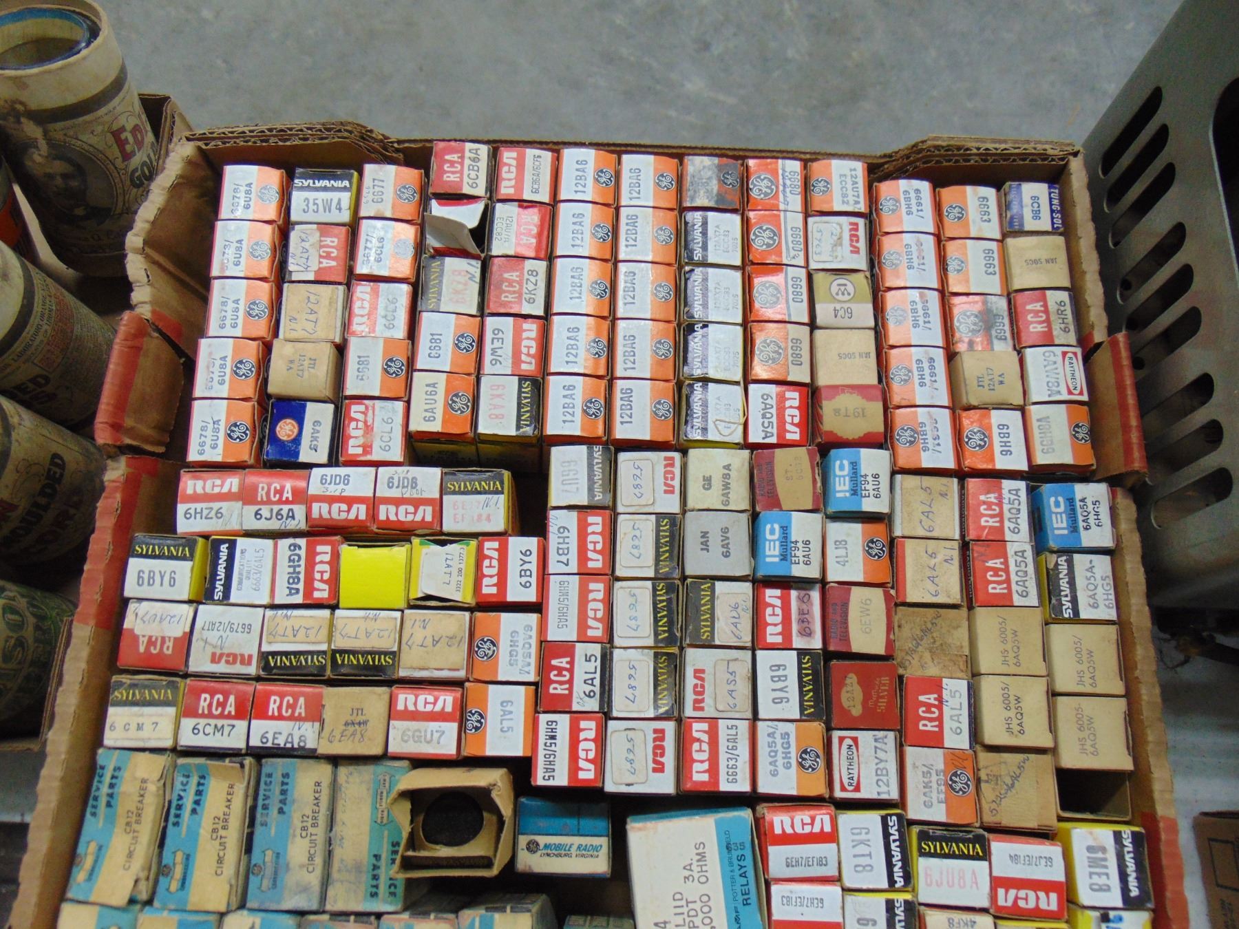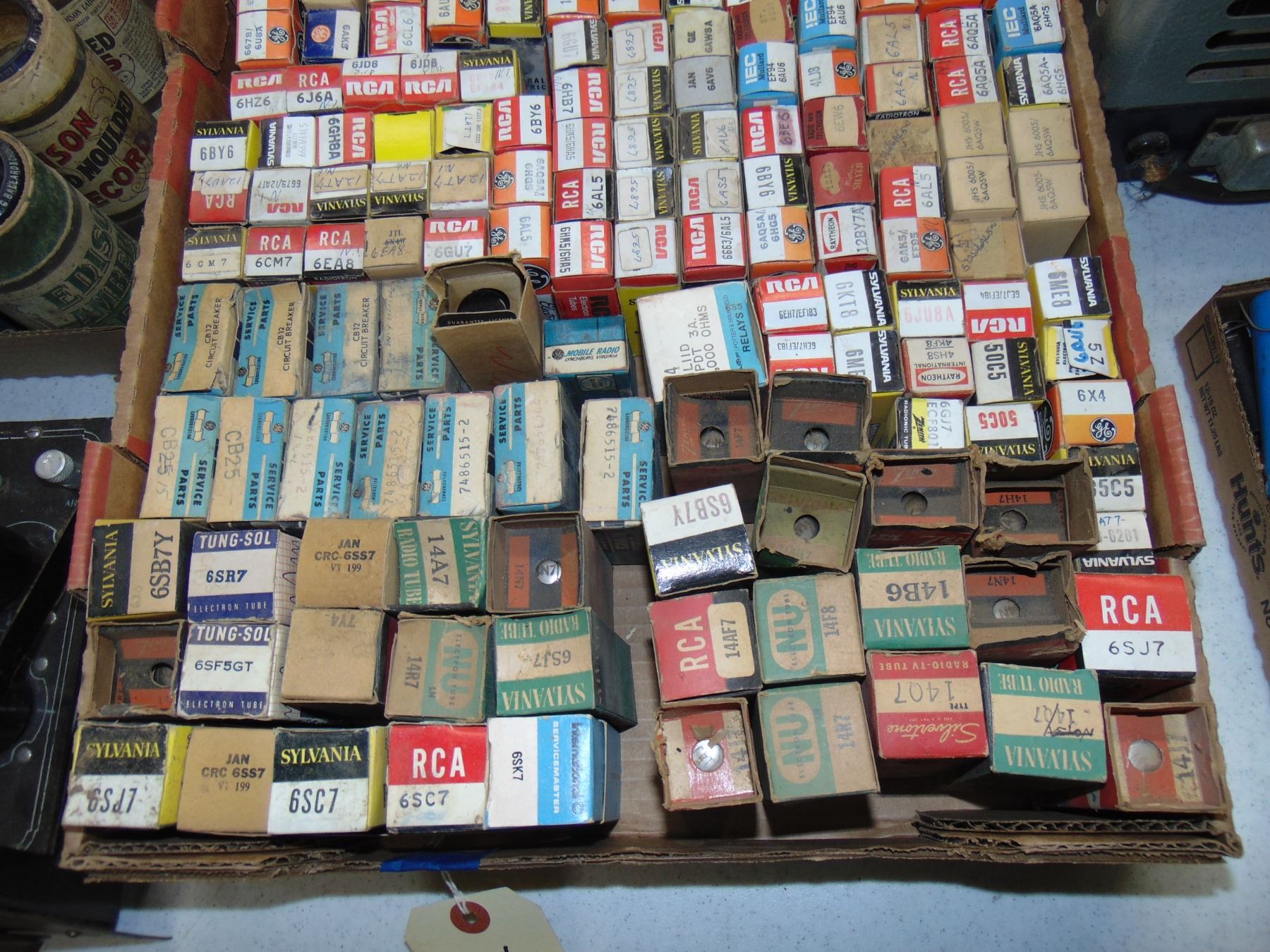 Large flat of mostly NOS miniature tubes; approximately 230 tubes