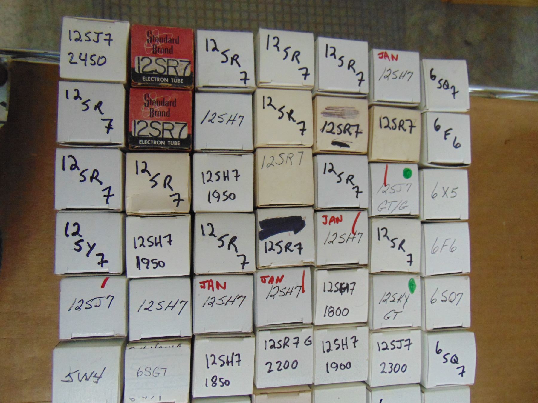 Regarding tubes, every tube box has not been checked, the auctioneer does not guarantee all tube boxes are correctly marked.  If you have specific requests to verify type and/or quality of tube, contact the auctioneer directly.  Items indicated as working does not mean item has been fully restored, only minimal testing has been performed.