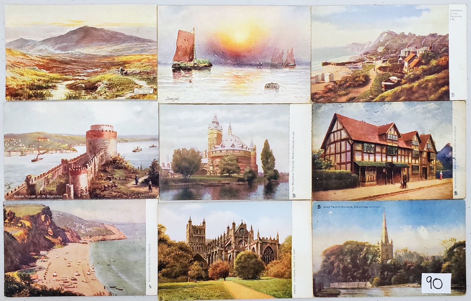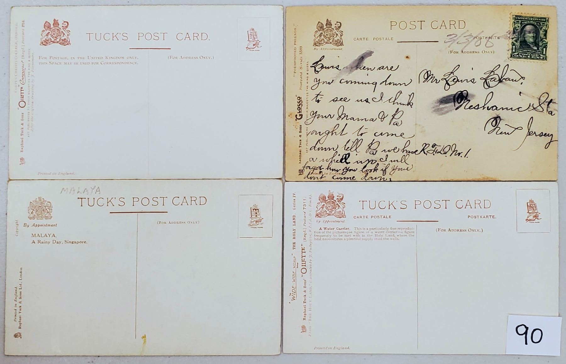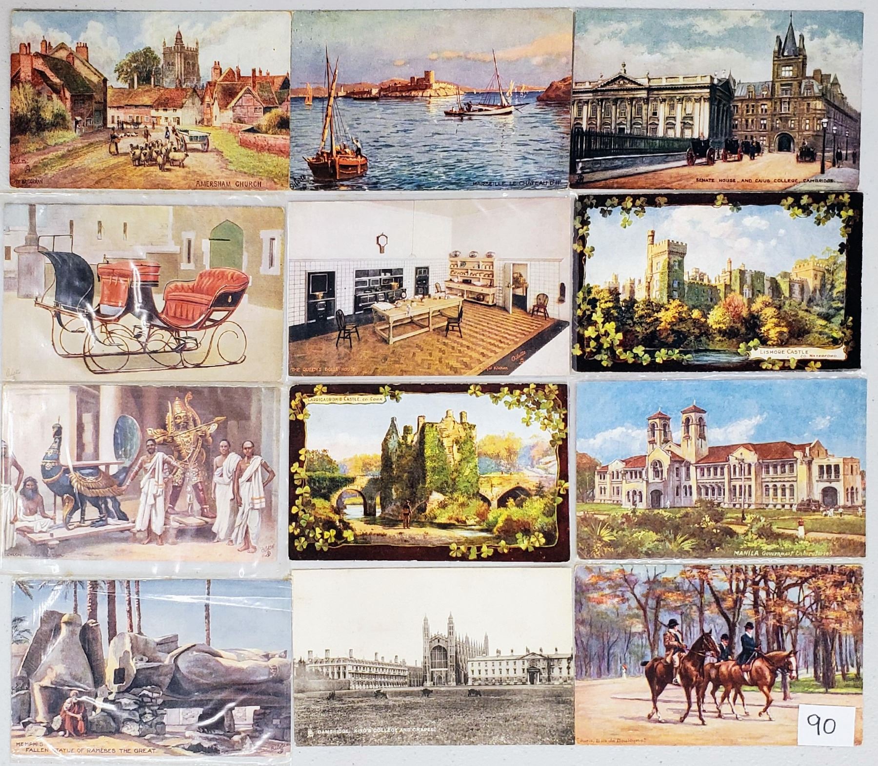 Over 80 early Tuck scene postcards.