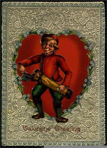 Tuck Valentine on Golf Theme. 1903 card by Rafael Tuck, unused, showing two-dimensional golf caddy holding bag of golf clubs on cover, "Valentine Greeting" imprinted below. Inside, two-stanza poem titled "The Caddy." 5 x 7. Choice and scarce.