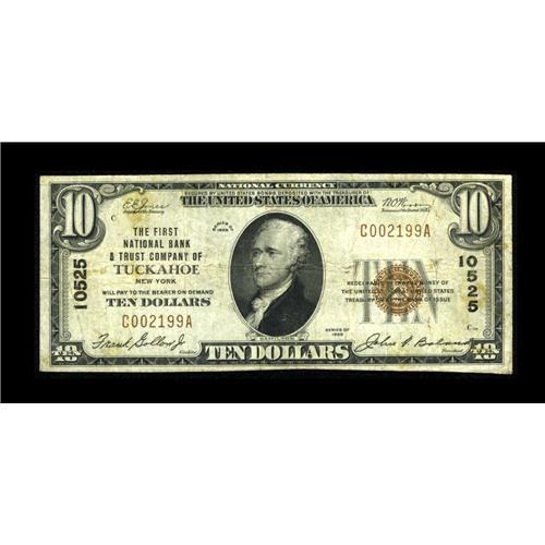 <B>Tuckahoe, NY</B></I> - $10 1929 Ty. 1 <B>The First NB & TC</B></I> Ch. # 10525<BR>A problem free <B>Fine+</B></I> bearing the second of two titles this bank utilized on its emissions. A nice example from strongly collected Westchester County.<BR><BR><b>Shipping:</b> Coin/Currency (<a target="_blank" href="http://www.heritageauctions.com/common/shipping.php">view shipping information</a>)