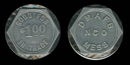 Tucson AZ Davis Mt AFB NCO mess $1 trade token; Nice condition!