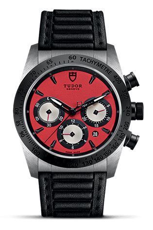 Model: 42010N-0006 - CASE = [Material:Ceramic], [Case Diameter:42], [Bezel:Fixed with Tachymeter Scale], [Case Back:Solid], [Water Resistant:150 Meters - 500 Feet], [Crystal:Scratch Resistant Sapphire Crystal], DIAL = [Color:Red Chronograph with Date at 4], MOVEMENT = [Type:Automatic Self-winding mechanical chronograph movement, TUDOR calibre 7753], [Crown:Screw Down], BAND = [Clasp:Folding], [Type:Black Leather], (In Stock - Ready to ship.)