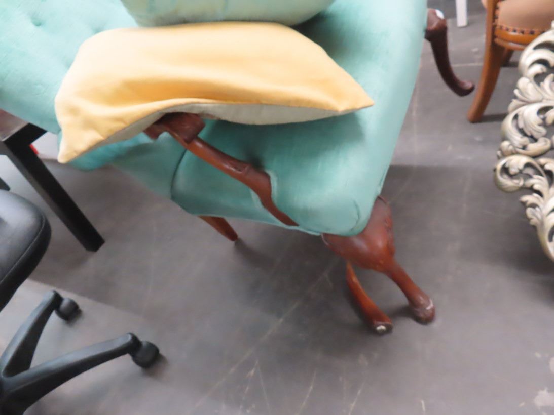 Tufted Mahogany Trim Armchair (Leg Needs Repair)