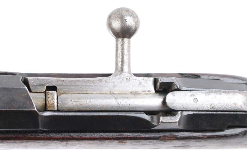 GOOD: Some minor replacement parts; metal smoothly rusted or lightly pitted in places, cleaned or re-blued; principal letters, numerals and design on metal legible; wood refinished, scratched bruised or minor cracks repaired; in good working order.