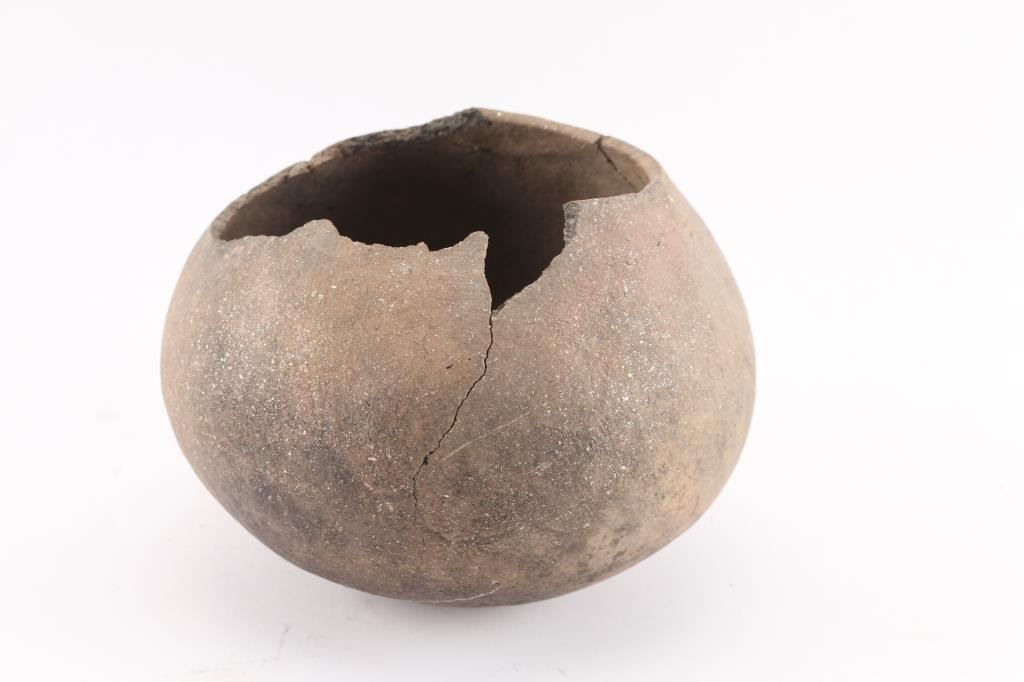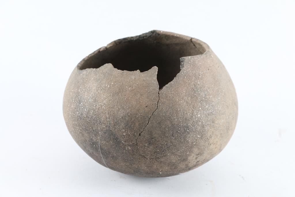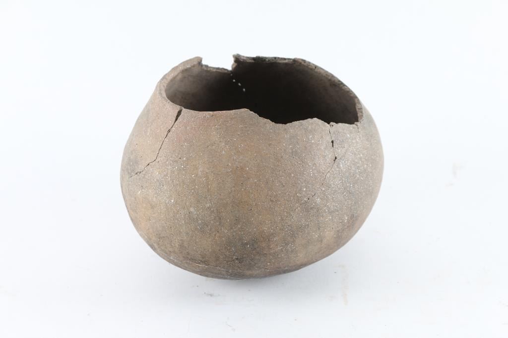 Measures 7 1/2" diameter x 6", condition is fair to poor. Heavy losses at rim.