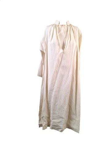Tulip Fever - Abbess (Judi Dench) screen worn, hero, white cotton linen, v-neck night dress with tie at the neck. Labeled inside with 'Abbess'.