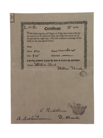 Screen used, certificate for tulip sale, confirming the exchange of bulbs at the sum agreed. (10'x7")