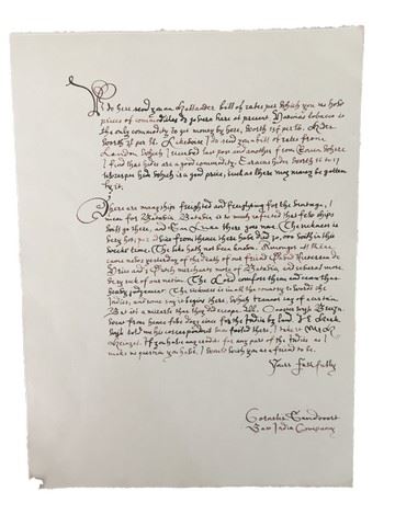 Screen used, Cornellis Sandvoort (Christoph Waltz) bill of rates. This is a letter explaing how prices and commodities govern at present. (13"x9")