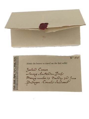 Cornellis Sandvoort (Christoph Waltz) screen used, tickect for the Zealand Carrier to travel from Amsterdam Docks Tuesday 3rd of June.(6"x3")