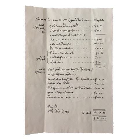 Jan Van Loos (Dane DeHaan) screen used, invoice from Dr. Sough given to Jan from the sale of bulbs, used in scene 102.(5x5 folded)
