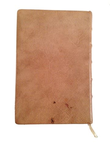 Jan Van Loos (Dane DeHaan) screen used, hero, light brown hard cover leather notebook with several pages of hand scribbled notes as well as a couple of pages detailing various flower prices. A majority of the pages are blank. (8.5"x5.5").