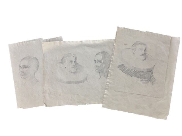 Jan Van Loos (Dane DeHaan) screen used, hero, original sketches of Sophia (Alicia Vikander), and Cornelis (Christoph Walts) 4 sketches in all, sketches of Sofia on her own and Cornelis on his own, then the two together in the last 2 sketches, slightly ripped in differant areas of the sketch and folded by production (Approx 17x13).
