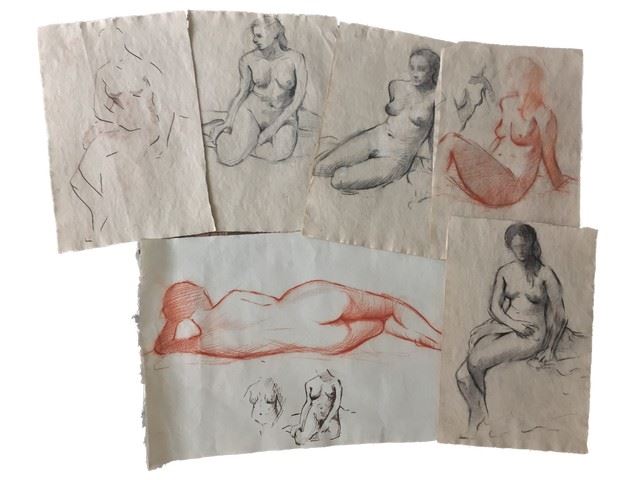 Jan Van Loos (Dane DeHaan) screen used, hero, original nude sketches of Sophia (Alicia Vikander), 6 sketches in various positions. (Approx. 20"x12").