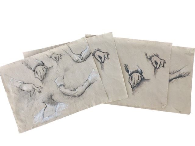 Jan Van Loos (Dane DeHaan) screen used, hero, original sketches of Sophia (Alicia Vikander), and Cornelis (Christoph Walts) 4 sketches in all, sketches are of the hands only and have been worn slighly around the edges by production. (18x13)