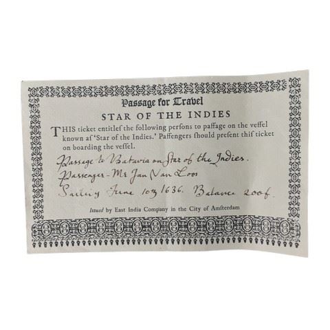 Jan Van Loos (Dane DeHaan) screen used, "Passage to Travel", this was a ticket for travel on the "Star of Indies"on June 10 1636.(7x5)