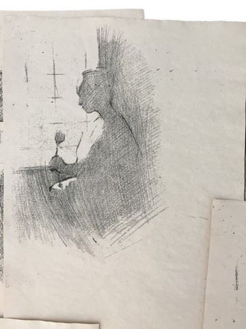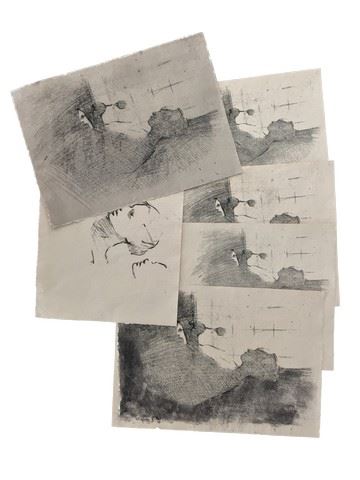 Jan Van Loos (Dane DeHaan) screen used, 6 different sketches of women holding a tulip, in various stages and shading, used in scene 170's.(17x12)