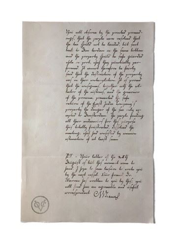 Screen used, letter from the voyage to Batavia. (13"x9")