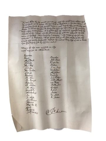 Screen used, letter with the men enlisted on the next voyage to Batavia.(14"x10")