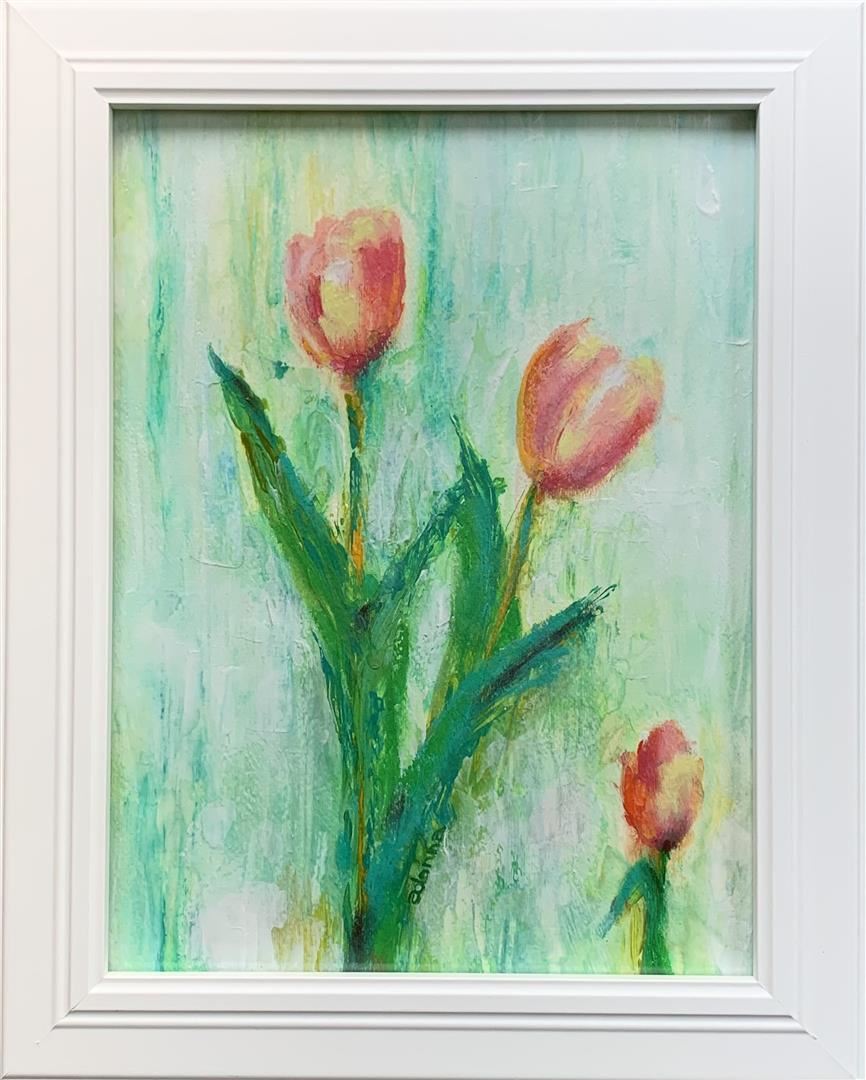 Tulips star in this tastefully framed acrylic on paper by Adonna. 12 x 14 finished size.