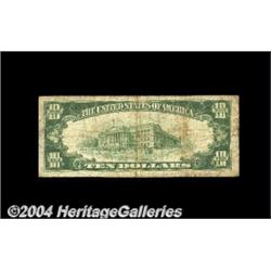 Tullahoma, TN - $10 1929 Ty. 1 The Traders NB Ch. # 4020Just 10 small size notes are recorded from this scarce and avidly collected bank. Very Good-Fine, with moderate circulation soil but the body of the full Fine grade. <BR><BR><B>Important notice:</B> Heritage usually auctions material at the rate of 200-250 lots per hour. On some occasions eBay Live bid software or the Internet may not be able to keep up with the pace of the auction. We recommend placing a realistic absentee bid now as insurance to avoid disappointment. Occasionally the auctioneer may eliminate or reject an eBay Live bid, and the auctioneer may also reopen a lot after the close of the eBay live bidding (usually because we missed an audience bid), and may reject your bid even if it shows you as the winning bidder. By bidding via eBay Live, you agree that Heritage may award the lot to another bidder at its sole discretion under the circumstances described above or any other reasonable circumstances. Since eBay bids are not shown to us until we open the lot on the floor, we treat those bids just like floor bids. In most cases the floor responds before the eBay bid is presented to us, due to Internet lag time, so for consistency we have made it a policy that floor bids are always considered first over tie eBay live bids. Also please note that all Heritage lots purchased through eBay Live carry a 20% Buyer's Premium. Please make sure you read the Terms and Conditions before you bid. <BR><BR><B>IMPORTANT ANNOUNCEMENT ABOUT RESERVES:</B> Heritage now divulges all reserves on its web site 7 days before every auction. If you want to know whether the reserve on this lot has been met, and if not, what the reserve amount is, please visit this lot page on the HeritageCoin.com web site, or email: bid@HeritageGalleries.com