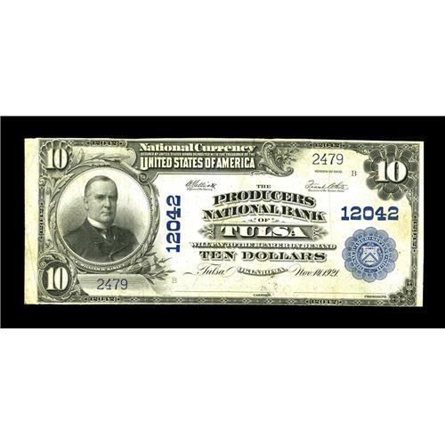 <B>Tulsa, OK</B></I> - $10 1902 Plain Back Fr. 634 <B>The Producers NB</B></I> Ch. # 12042<BR>One of Tulsa's more elusive issuers, with only about a dozen large examples in the census. This is one of the nicer ones. <B>Very Fine,</B></I> with the signatures a bit light.<BR><BR><b>Shipping:</b> Coin/Currency (<a target="_blank" href="http://www.heritageauctions.com/common/shipping.php">view shipping information</a>)