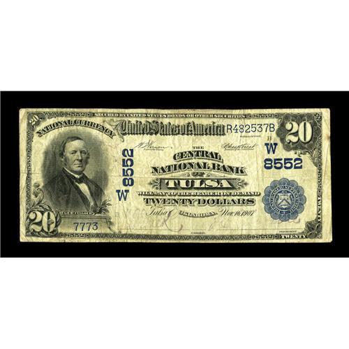 <B>Tulsa, OK</B></I> - $20 1902 Plain Back Fr. 652 <B>The Central NB</B></I> Ch. # (W)8552<BR>Large notes only from this Tulsa bank. <B>Fine+.</B></I><BR><BR><b>Shipping:</b> Coin/Currency (<a target="_blank" href="http://www.heritageauctions.com/common/shipping.php">view shipping information</a>)