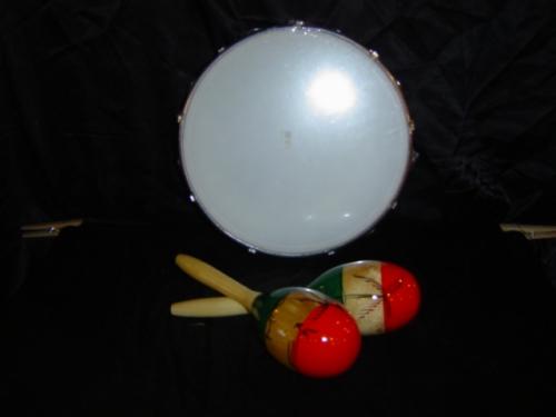 Professional, myalar head, tunable 11" tambourine and 2 hand carved Mexican maraccas