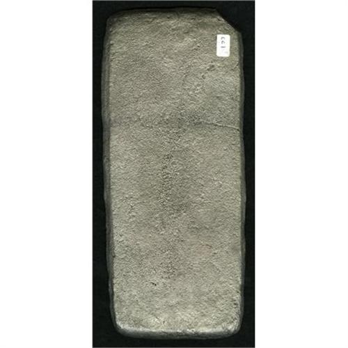 <B>Tumbaga silver bar ND (c 1525),</B></I> a name given to an alloy of mostly silver in combination with gold and copper. This bar was discovered, with around 200 others, in the Bahamas in 1992. It has tax stamps and assayers mark that trace directly to the Holy Roman Emperor Charles V. The number on the tag on the bar corresponds to the number in the book, <I>Tumbaga Silver for Emperor Charles V of the Holy Roman Empire,</B></I> by Douglas Armstrong who cleaned and preserved each bar in his laboratory in Florida. We have taken this directly from the certificate which accompanies the bar. The certificate is from noted shipwreck specialist Daniel Frank Sedwick. The weight is 5.66 pounds.<BR><BR><b>Shipping:</b> Coin/Currency (<a target="_blank" href="http://www.heritageauctions.com/common/shipping.php">view shipping information</a>)