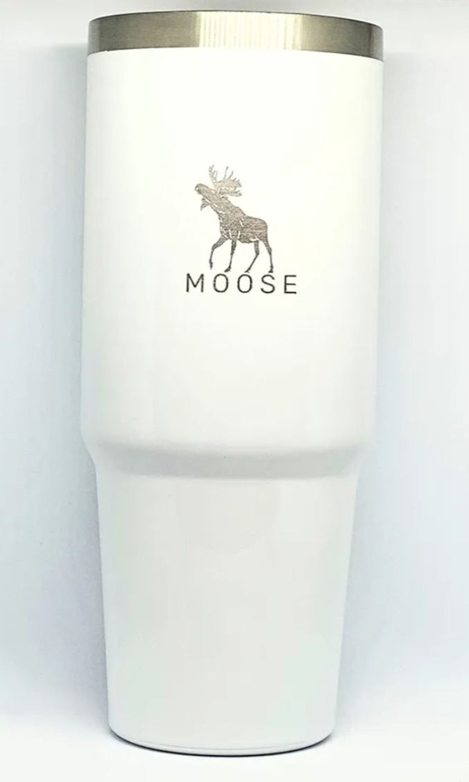 Moose 30 Oz, stainless steel tumbler, ice cap White, new