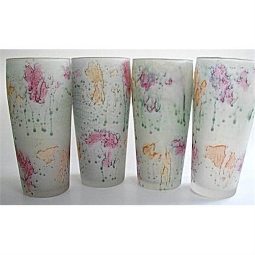 Fabulous set of handblown tumblers or glasses by Rueven Brown. <BR>An Israeli artist based in Philadelphia from my research whose art pieces are fast becoming very desirable by collectors. <BR>This designer also does some of the Fenton animals as well as being distibuted by Nouveau Art Glass Company. <BR>Smooth as silk these tumblers are handblown as well as handpainted and no two are alike. Price is for set of 4.