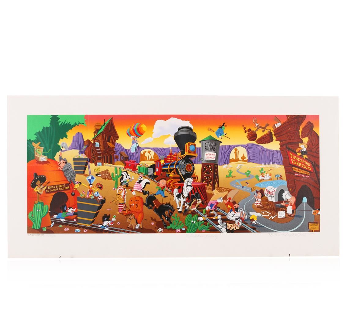 Tunestone Territory: With pun intended, Melanie Taylor Kent and Warner Brothers issued this beautiful serigraph, filled with Warner Brothers characters in action. This is a signed & numbered, licensed limited edition on arches paper. Limited Edition S/N Serigraph #406/500.