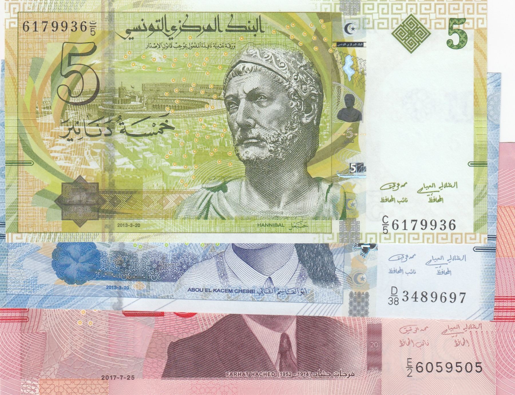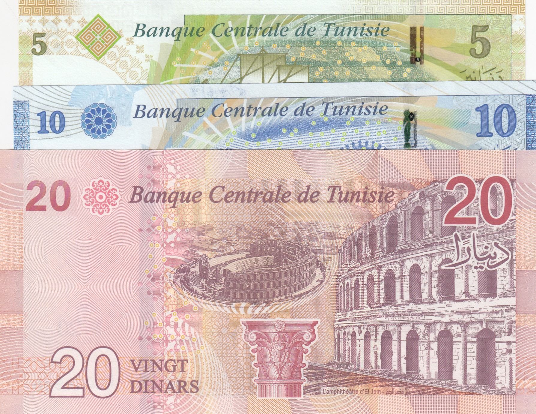 Tunisia, 5 Dinar, 10 Dinar and 20 Dinar, 2015/2017, UNC, (Total 3 banknotes)br/