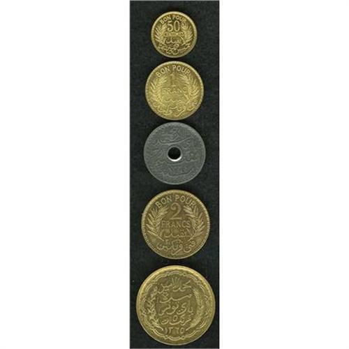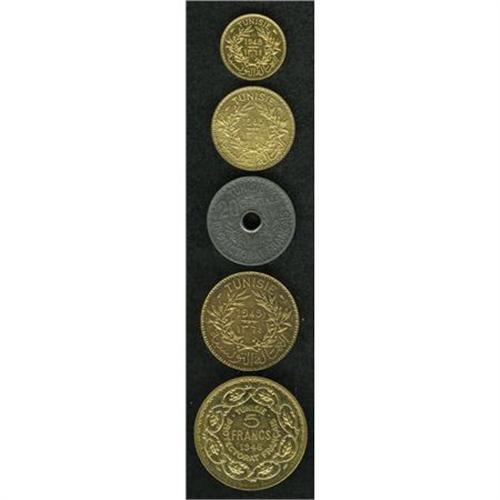 <B>French Protectorate Piefort Essai Set,</B></I> KM-PE1 20 Centimes 1945, KM-PE2 50 Centimes 1945, KM-PE3 Franc 1945, KM-PE4 2 Francs 1945 and KM-PE5 5 Francs 1946. All are choice UNC with mintages of 104. <B>Sold as is, no return lot.</B></I><BR><BR><b>Shipping:</b> Coins & Currency (<a target="_blank" href="http://www.heritageauctions.com/common/shipping.php">view shipping information</a>)