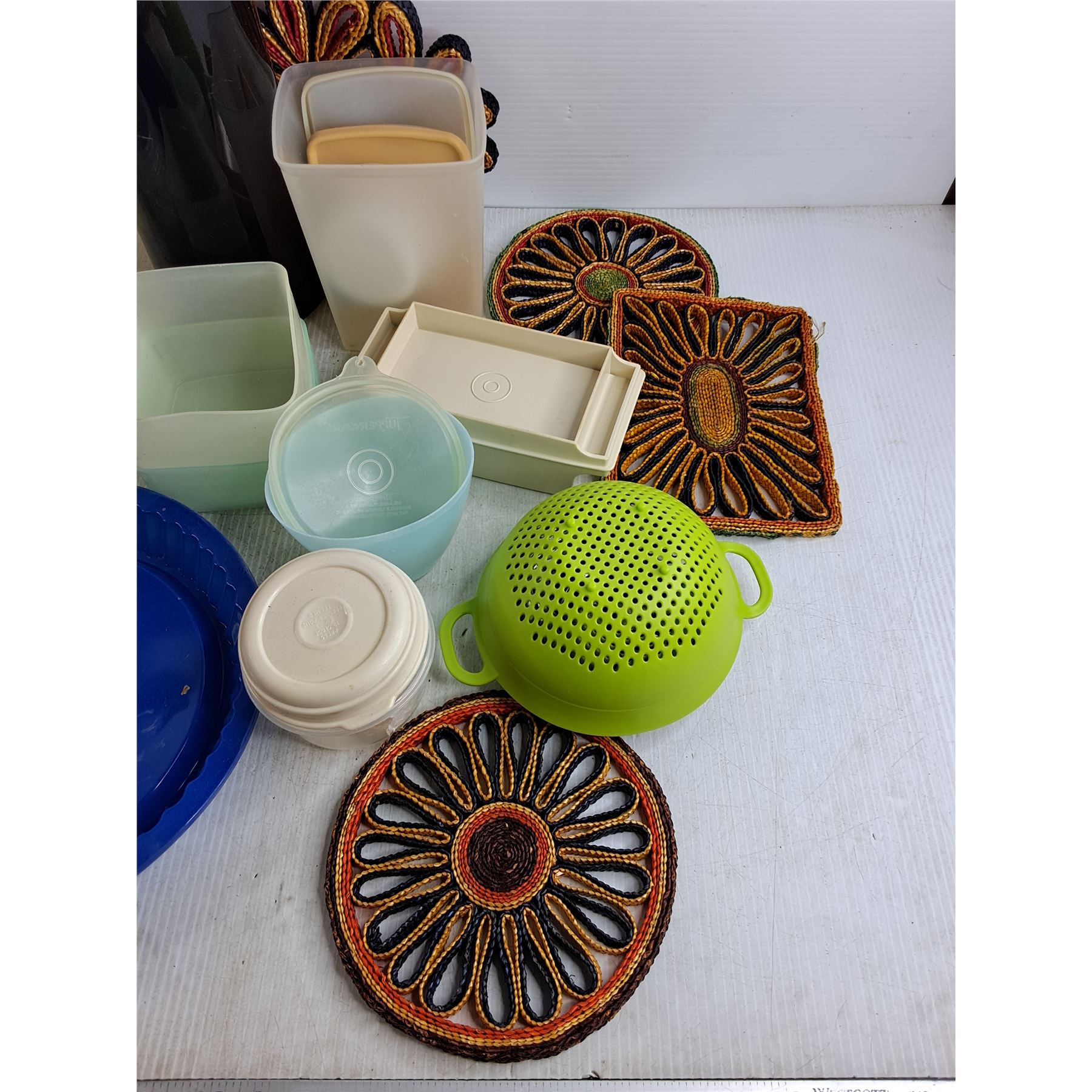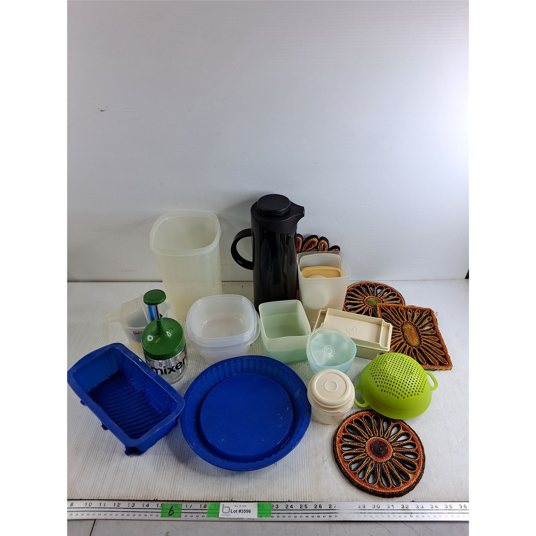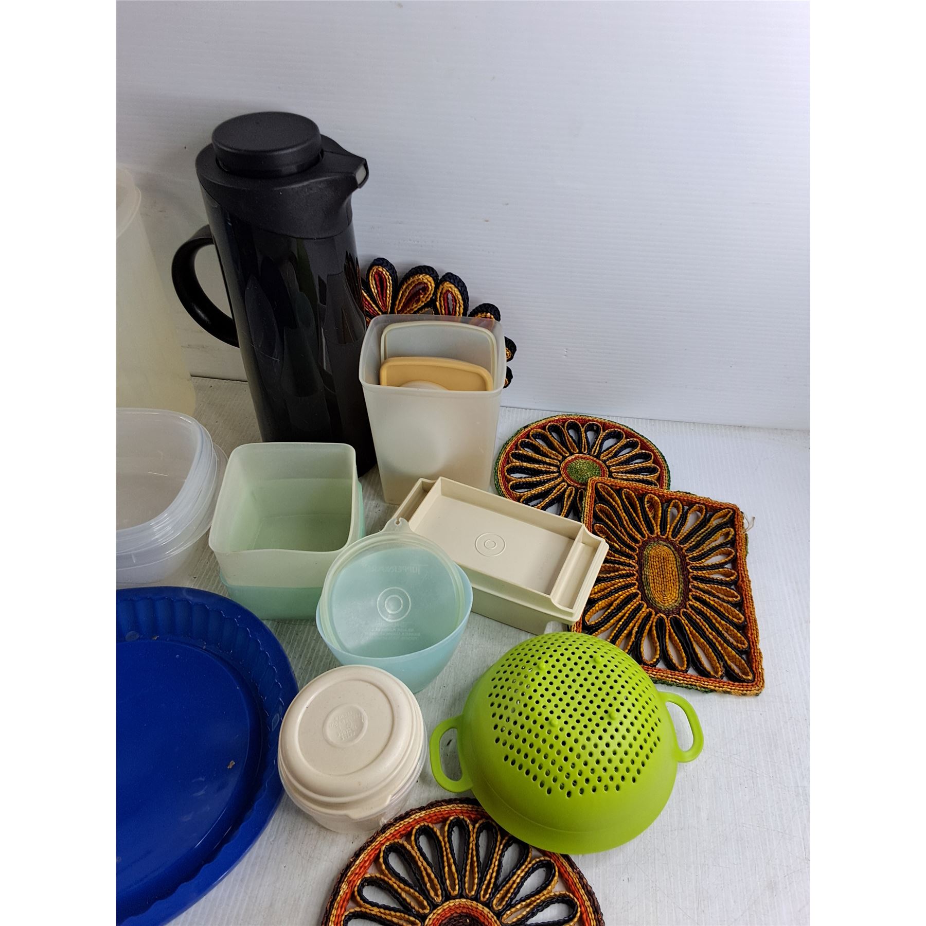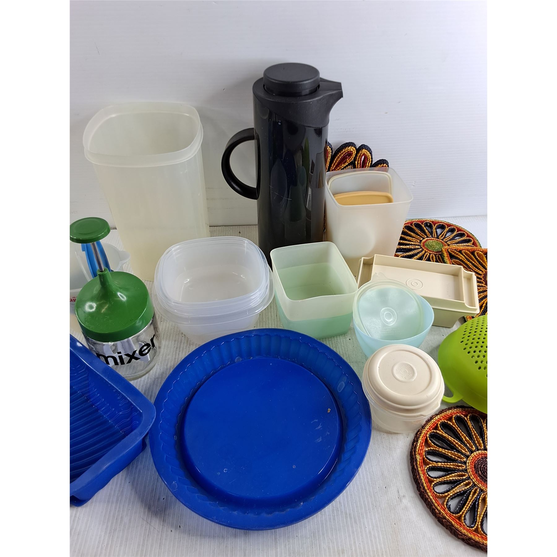 Tupperware Containers, Coffee Pot, Mixer, Strainer, Silicone Molds, Hot Pads