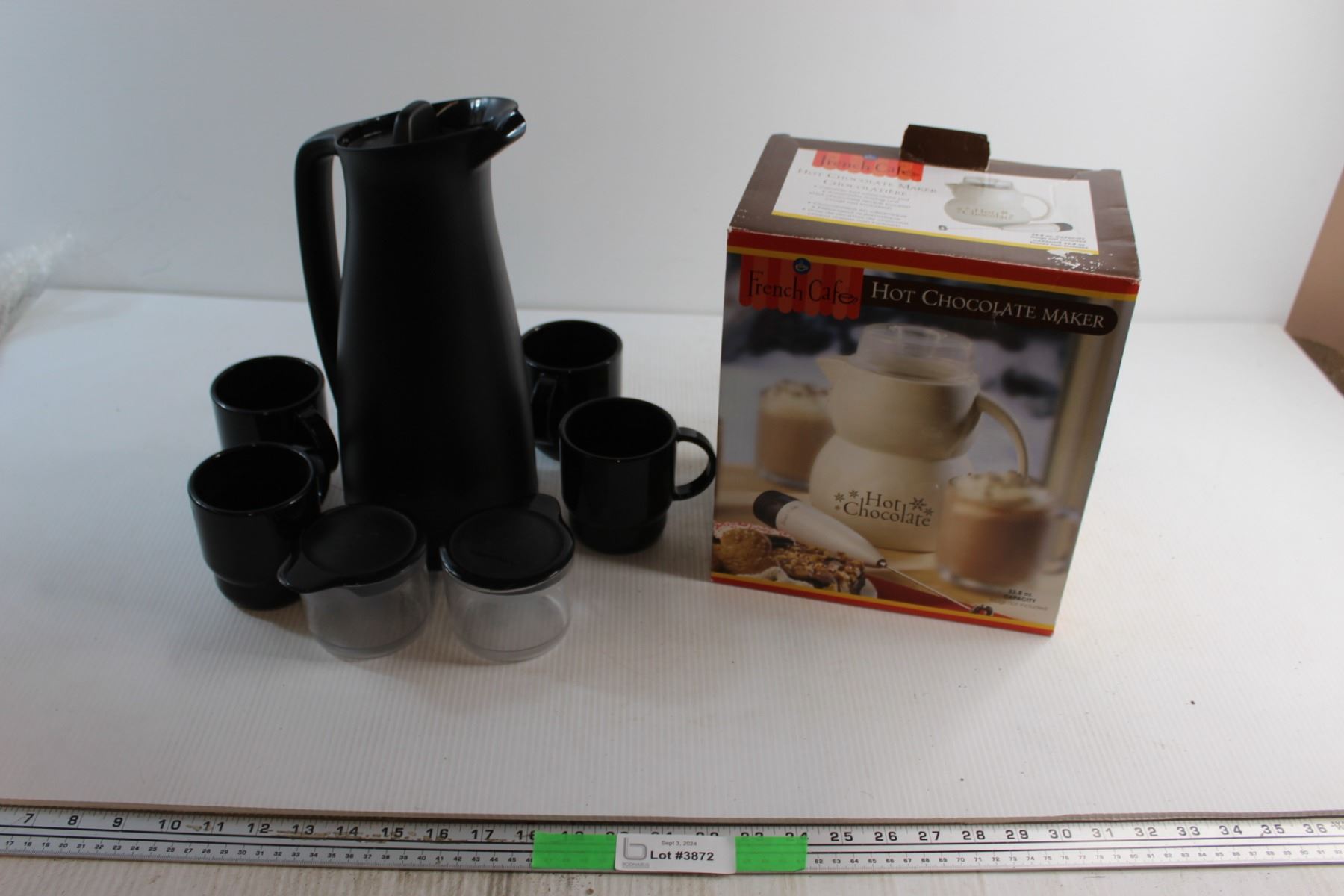 Tupperware Pitcher and (6) Cups and 33.8 oz Hot Chocolate Maker